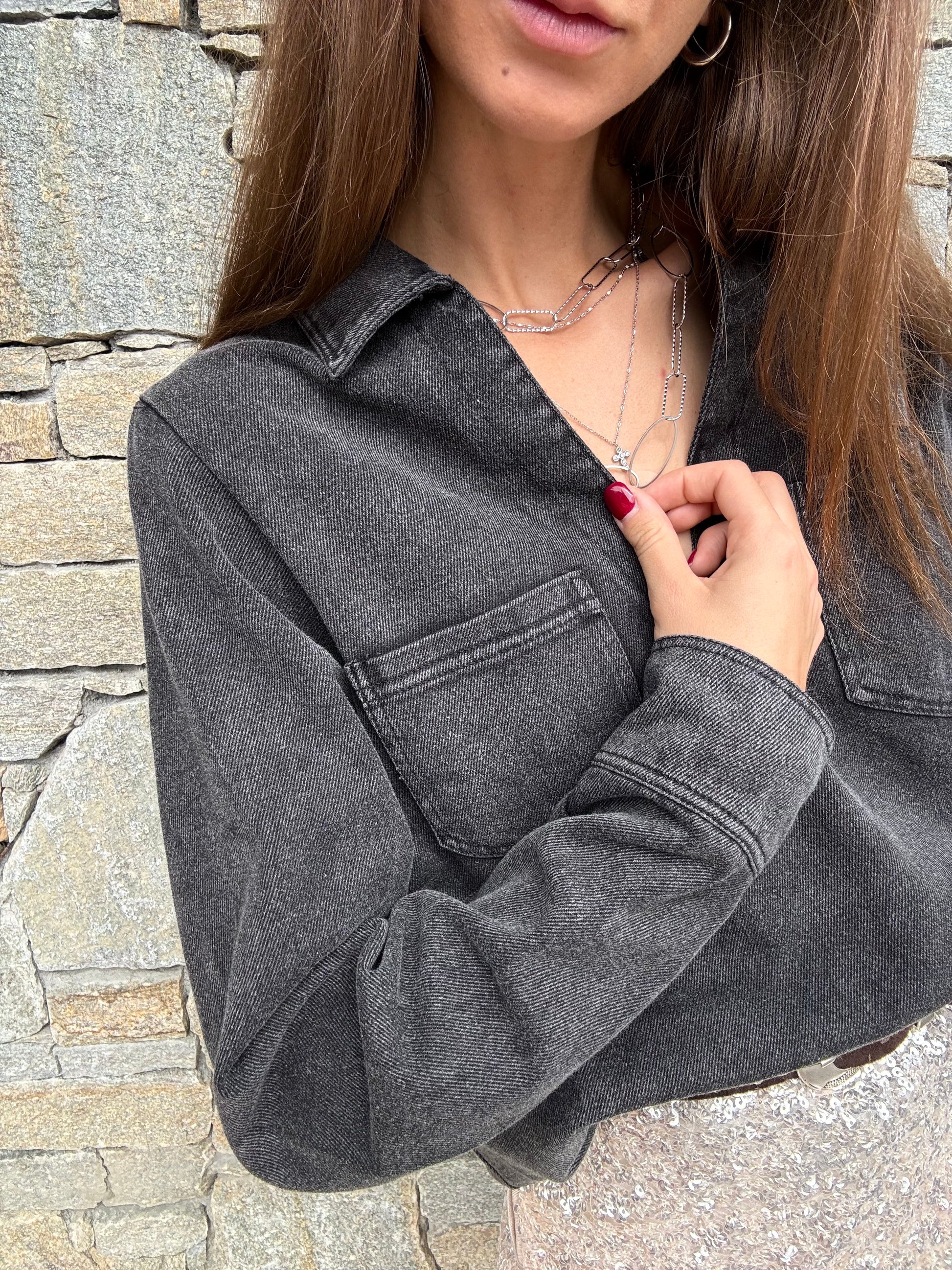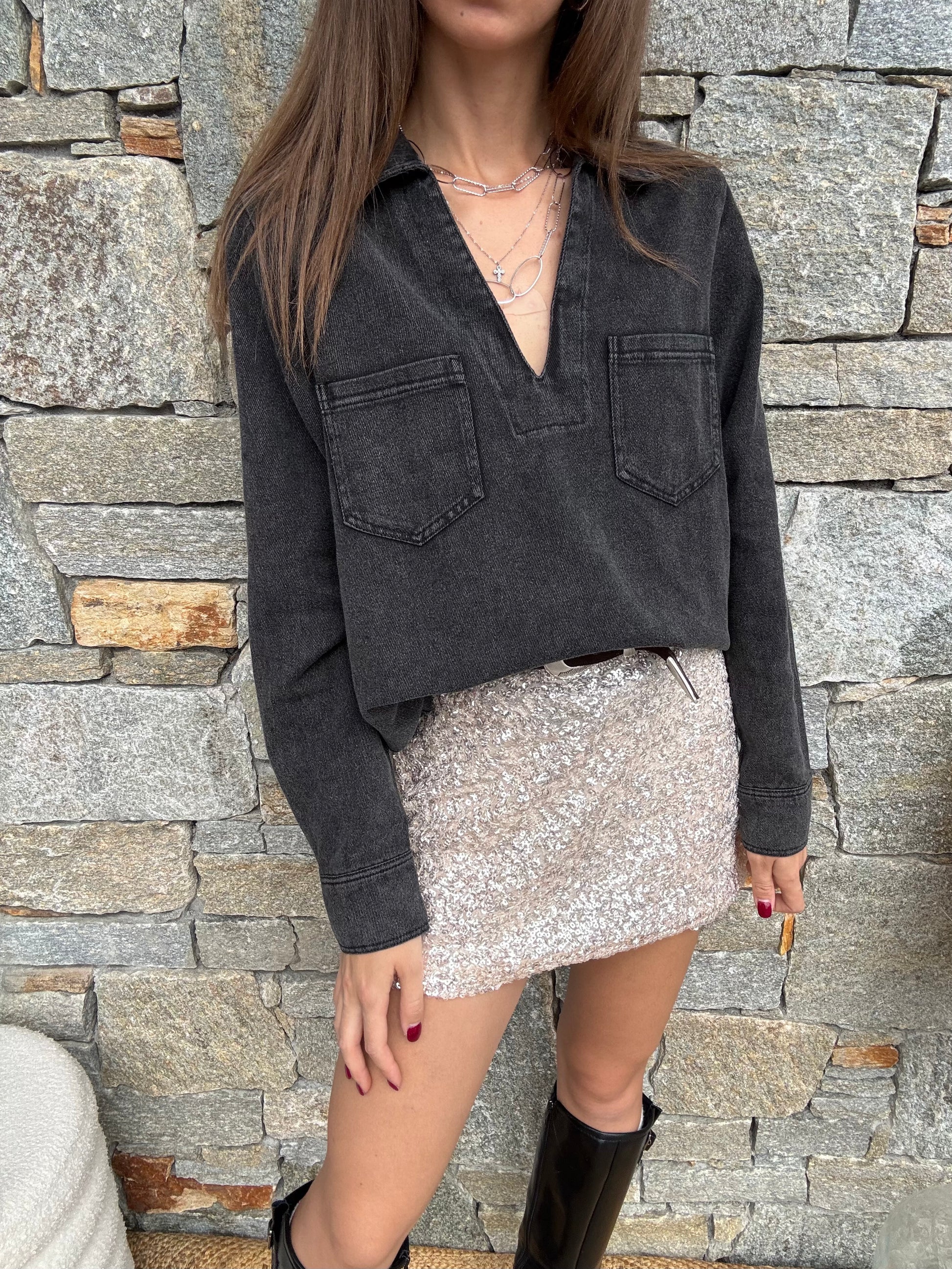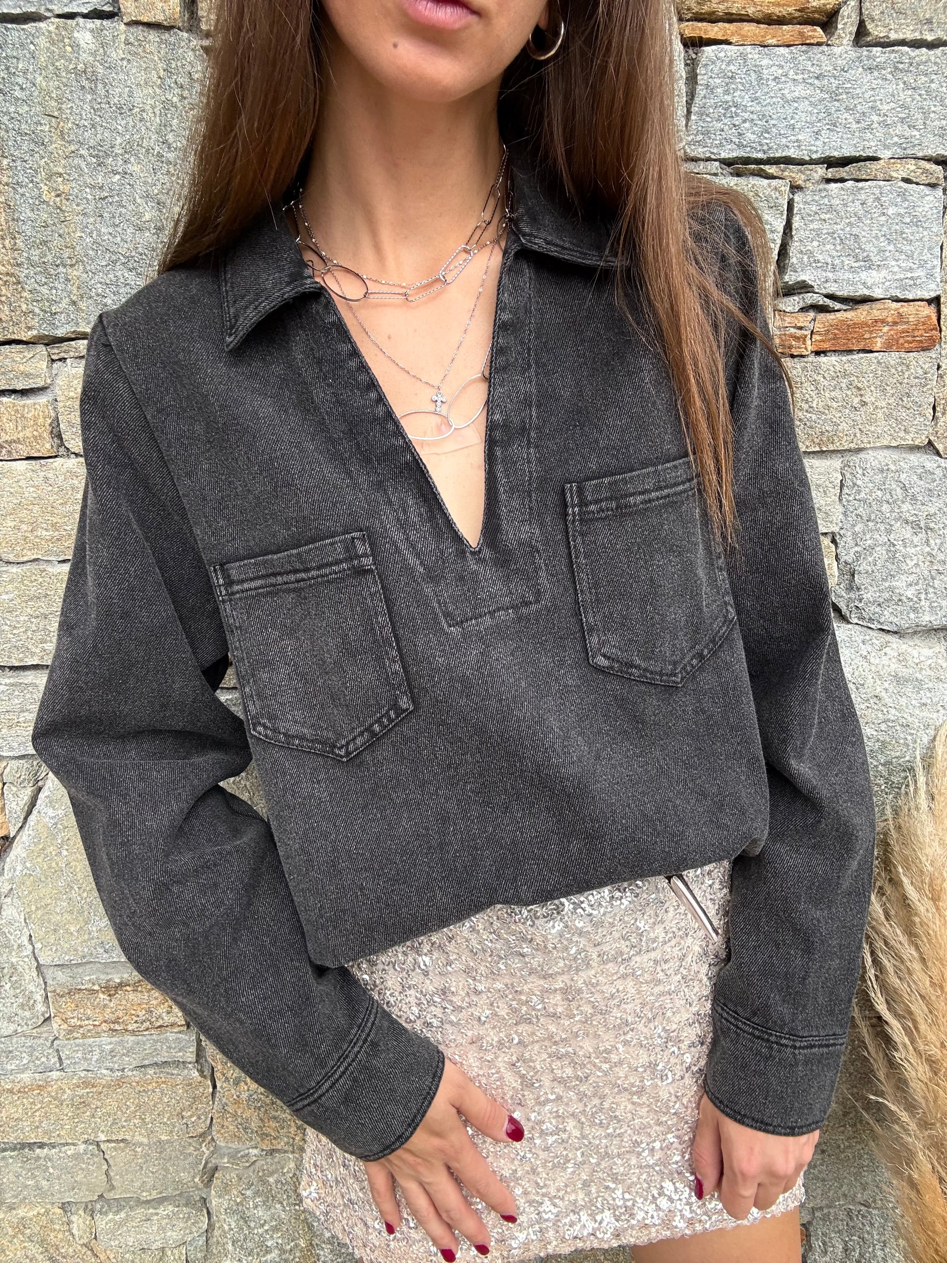 Une blouse en jeans hyper stylé ! 2 poches poitrines , coupe droite, petit col