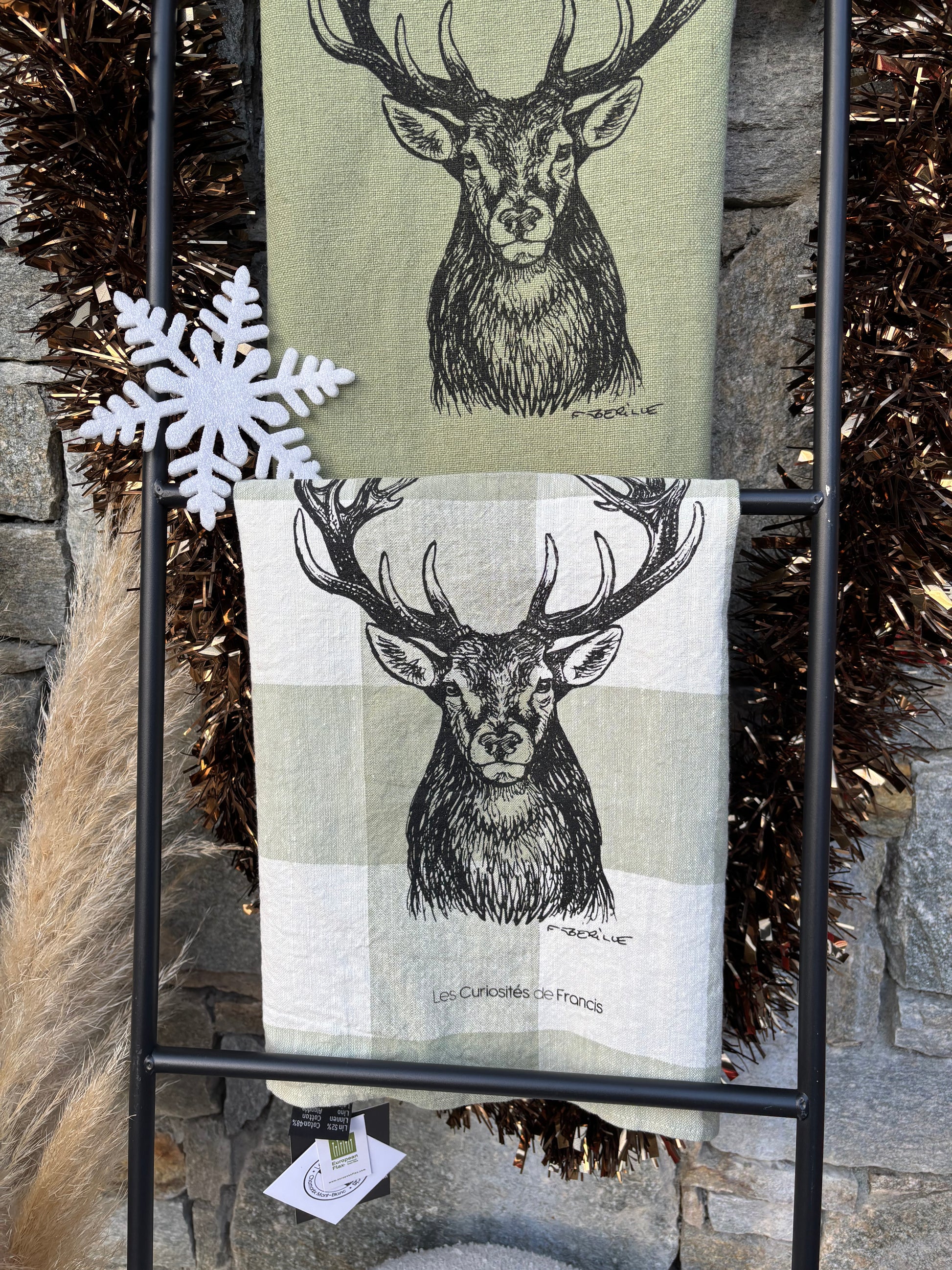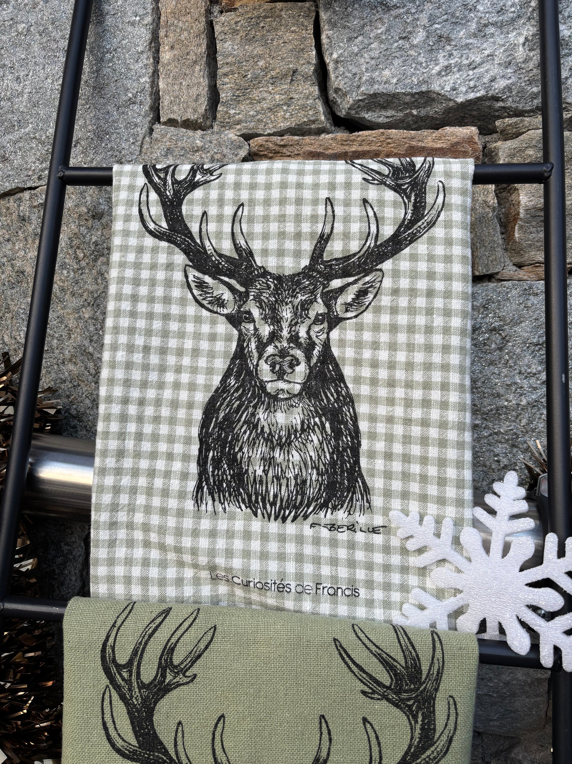 100% lin, à laver en machine dans un filet à moins de 30*C, pas de fer à repasser sur les impressions.