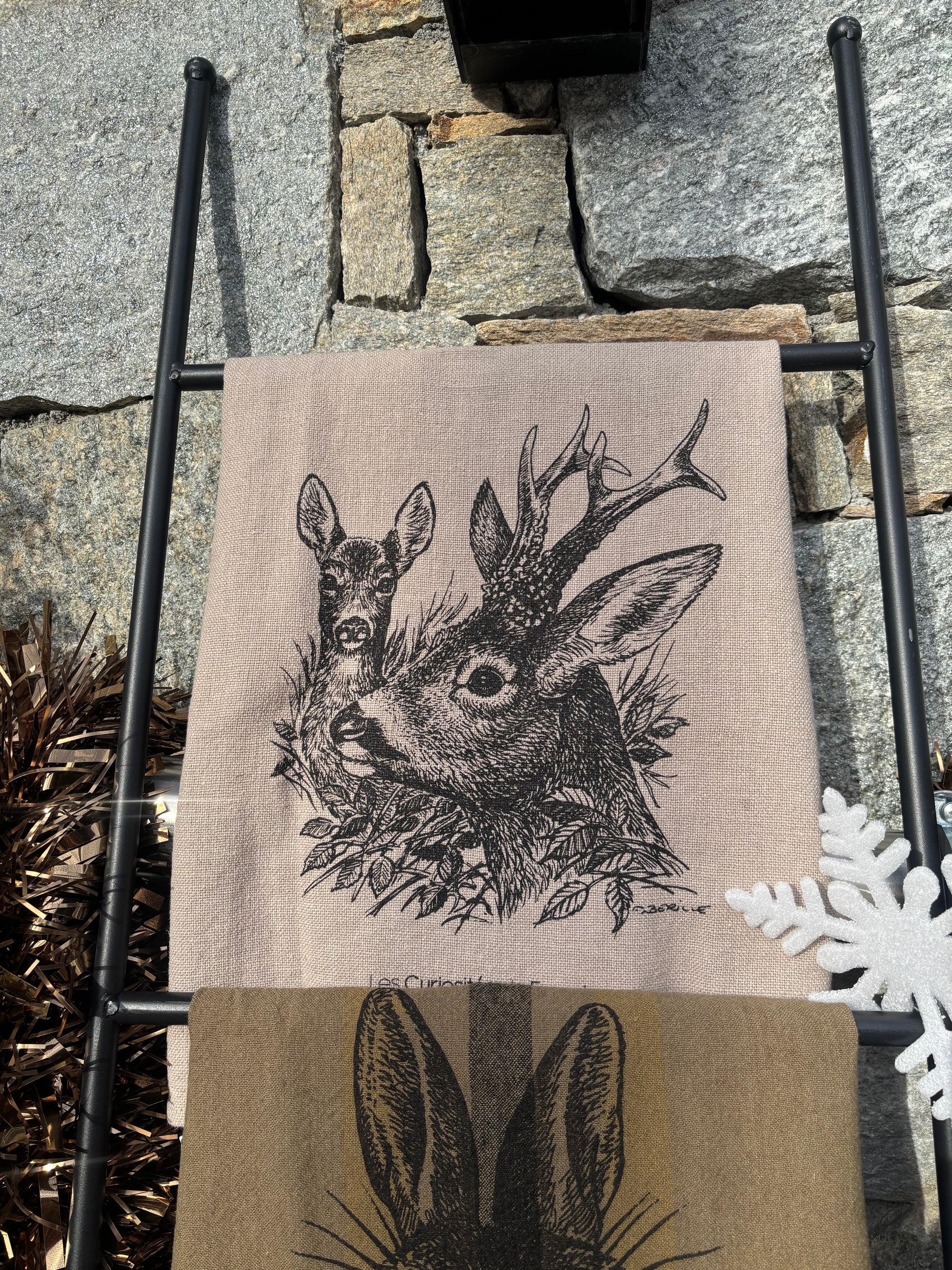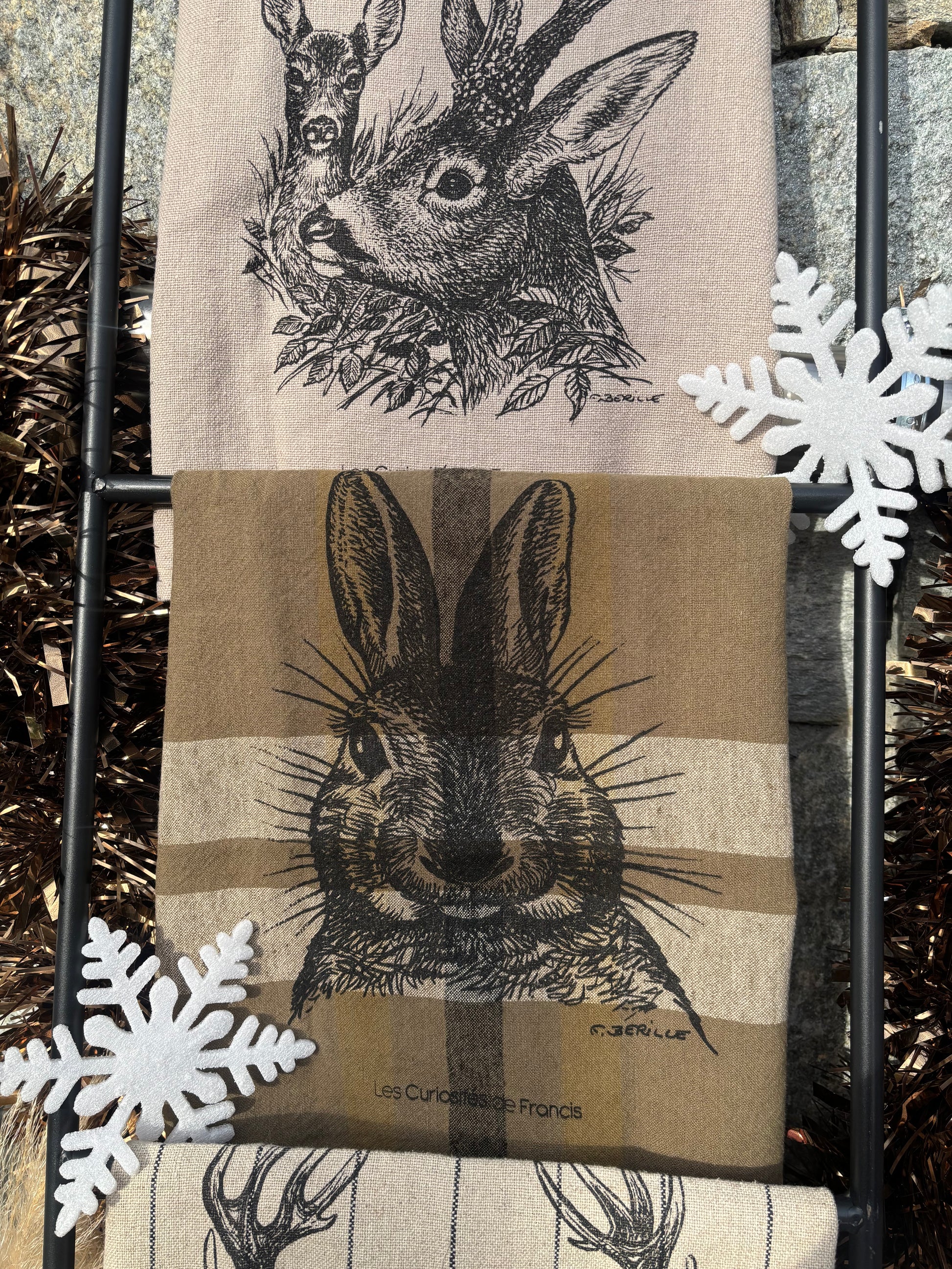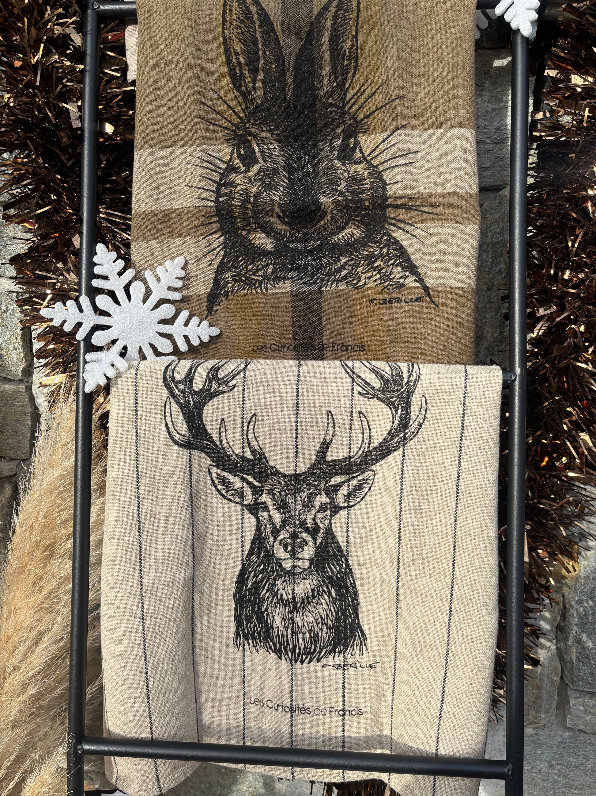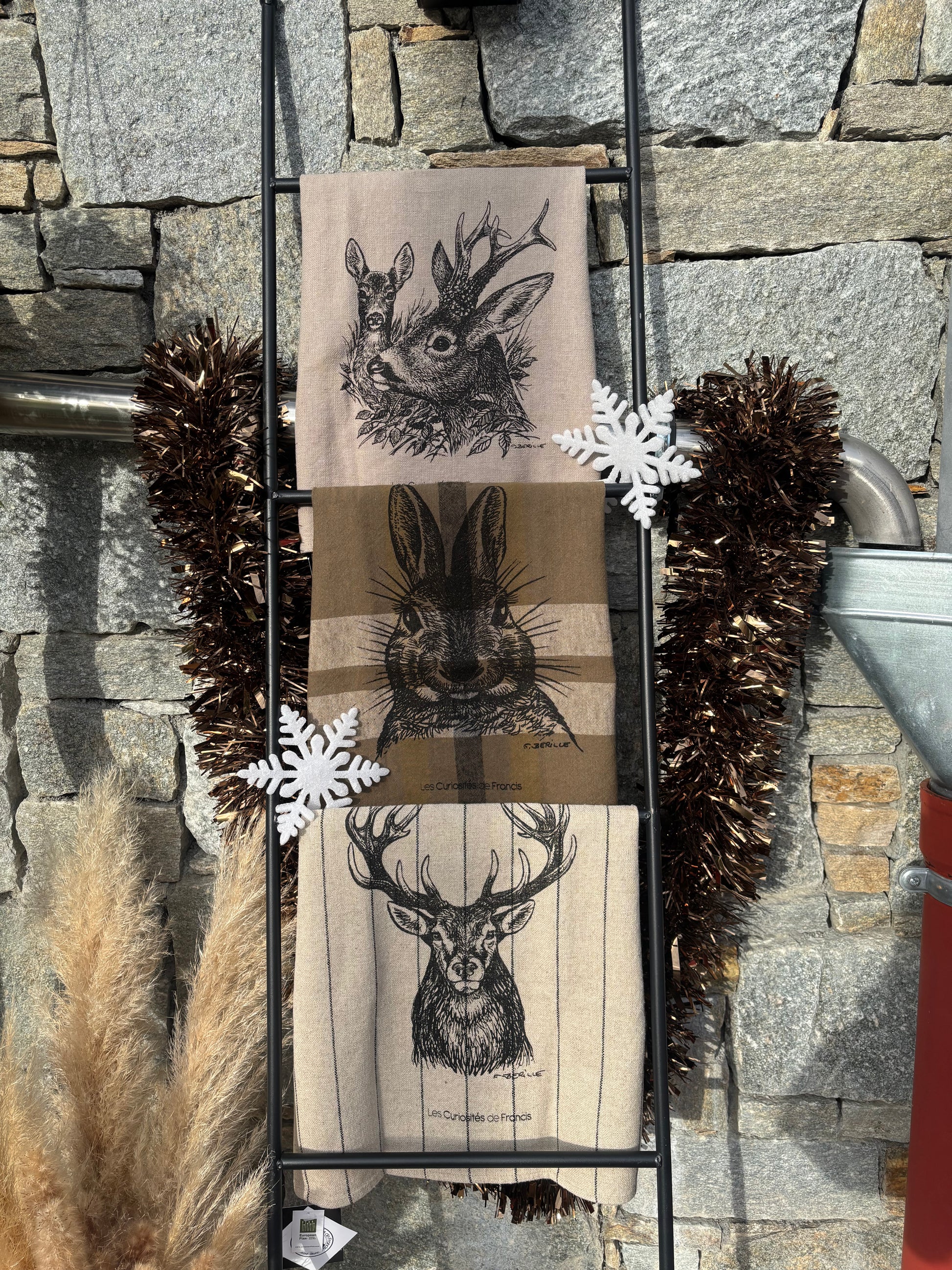 Dans ce coffret retrouvez 3 torchons : LAPIN, CERF, CHEVREUIL ET CHEVRETTE