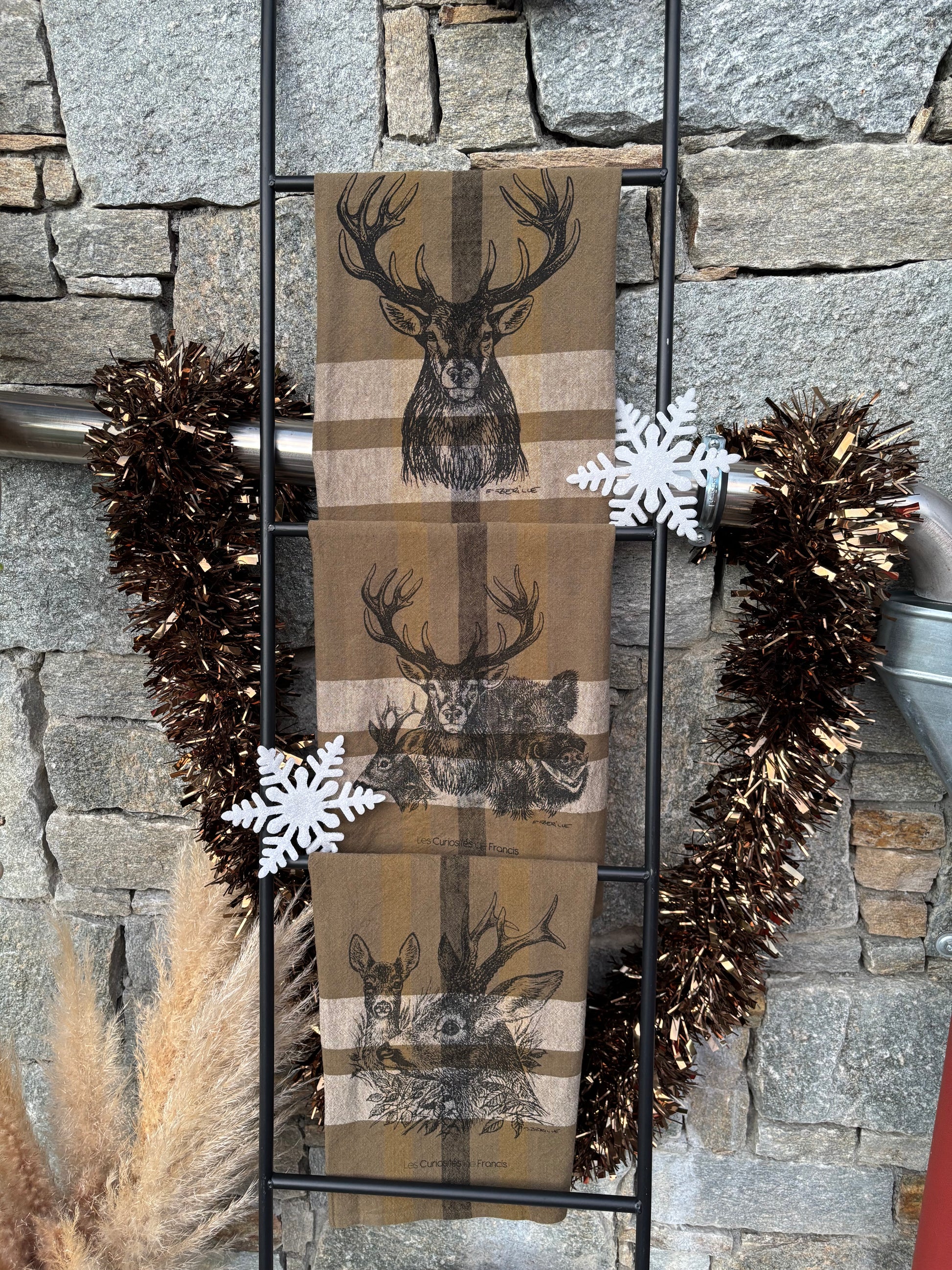 Dans ce coffret retrouvez 3 torchons : 3GIBIERS, CERF, CHEVREUIL ET CHEVRETTE