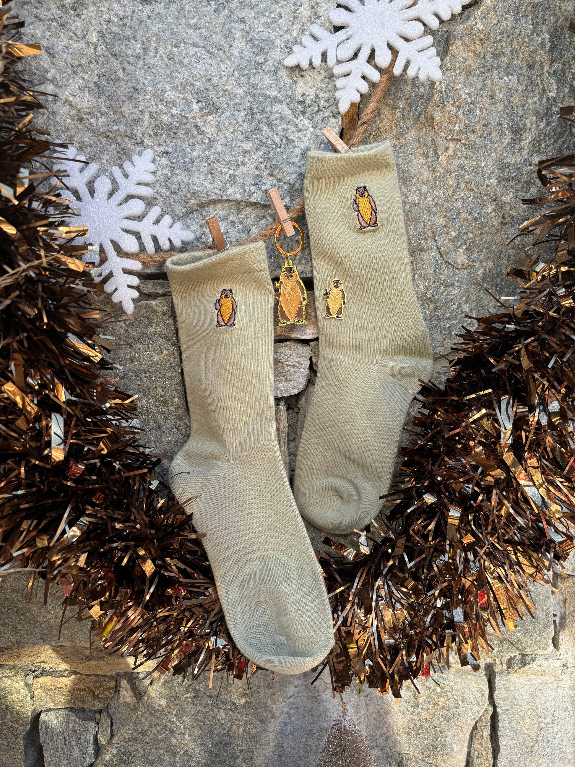 Ce coffret contient : 1 paire de chaussettes, 1 pins et 1 porte clef !