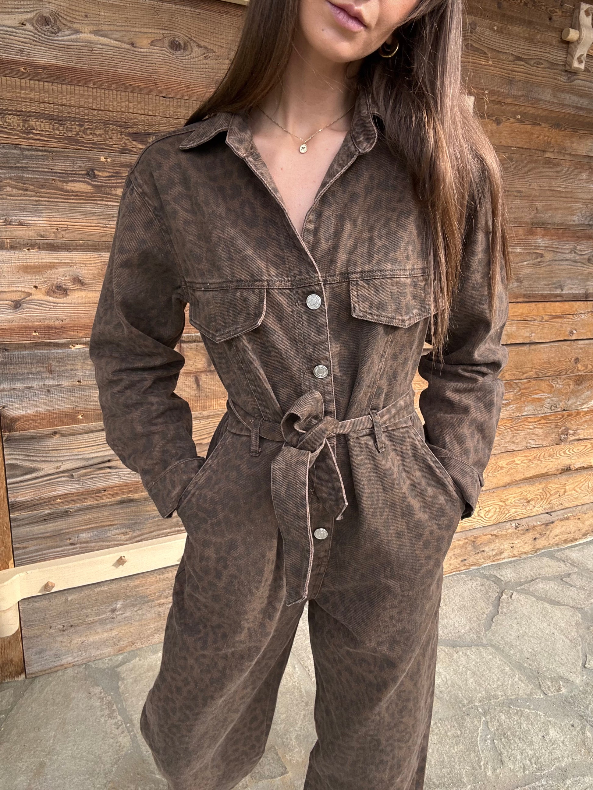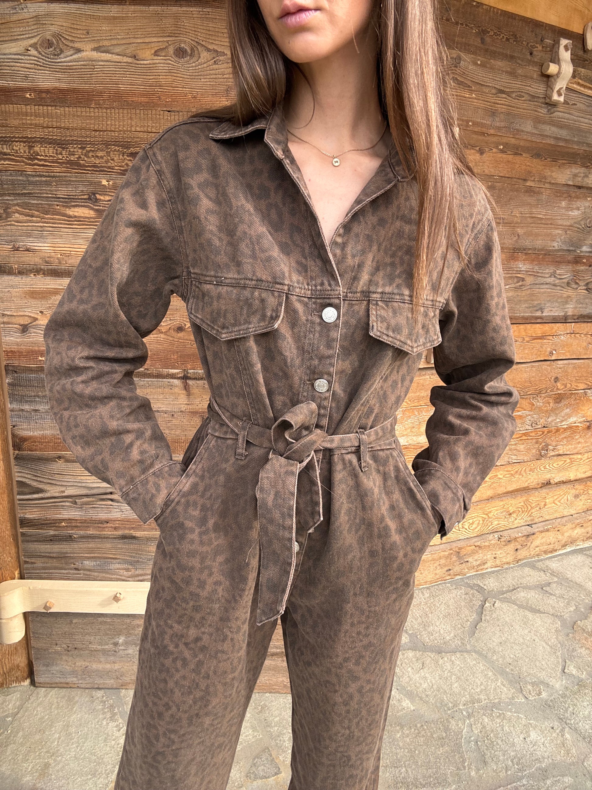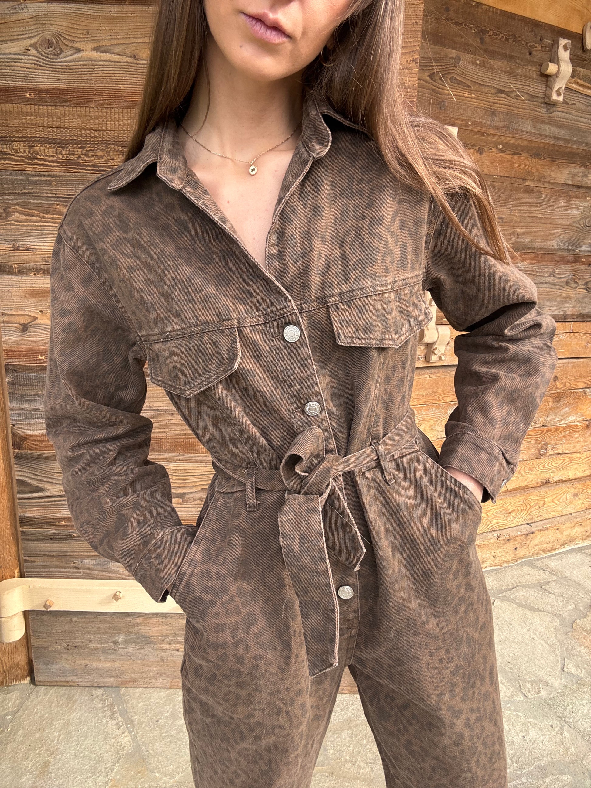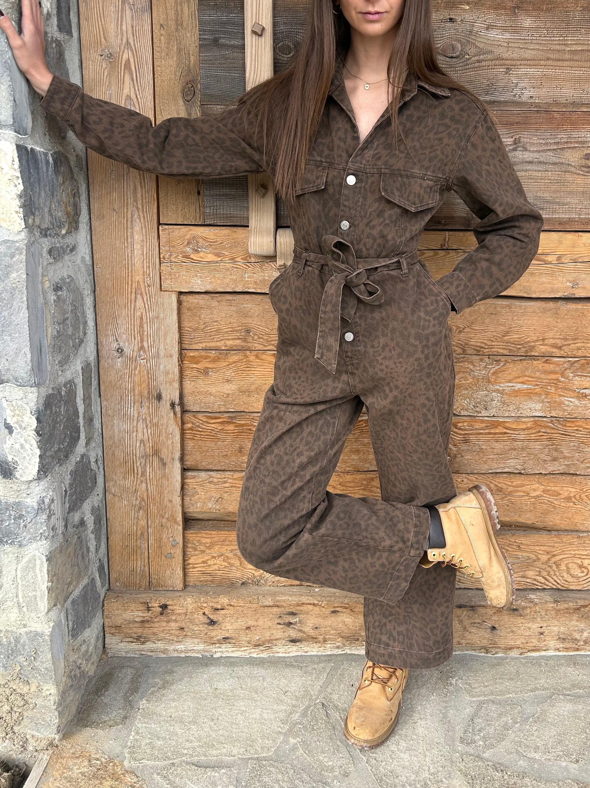 Une combinaison en jeans imprimé léopard à tomber par terre …