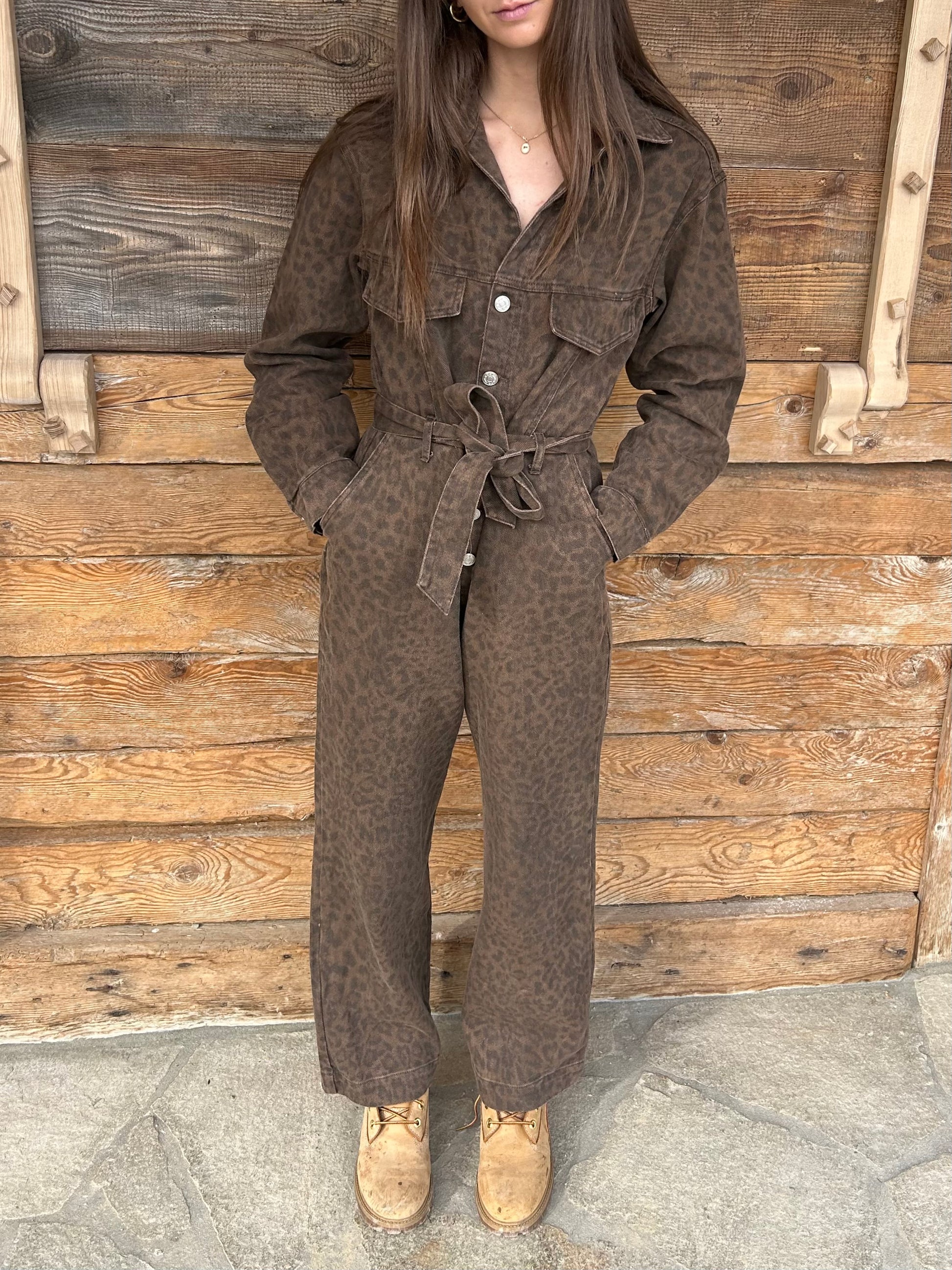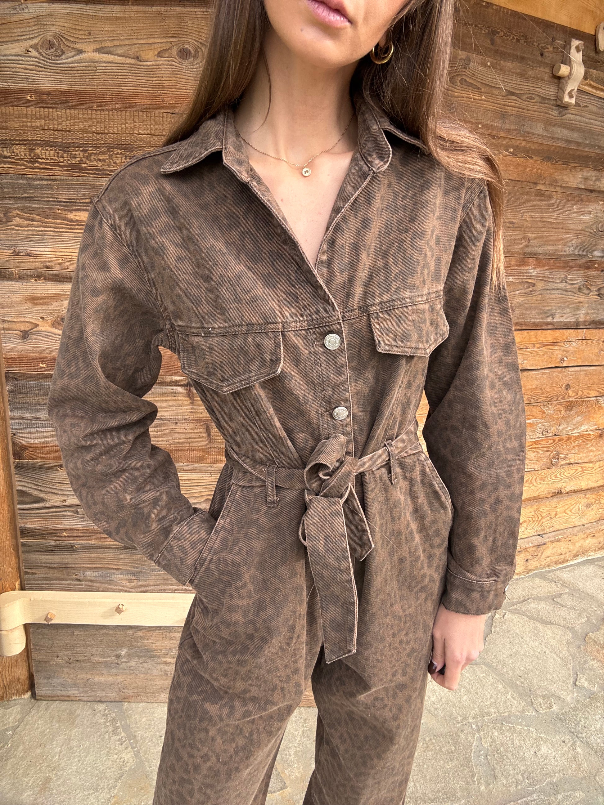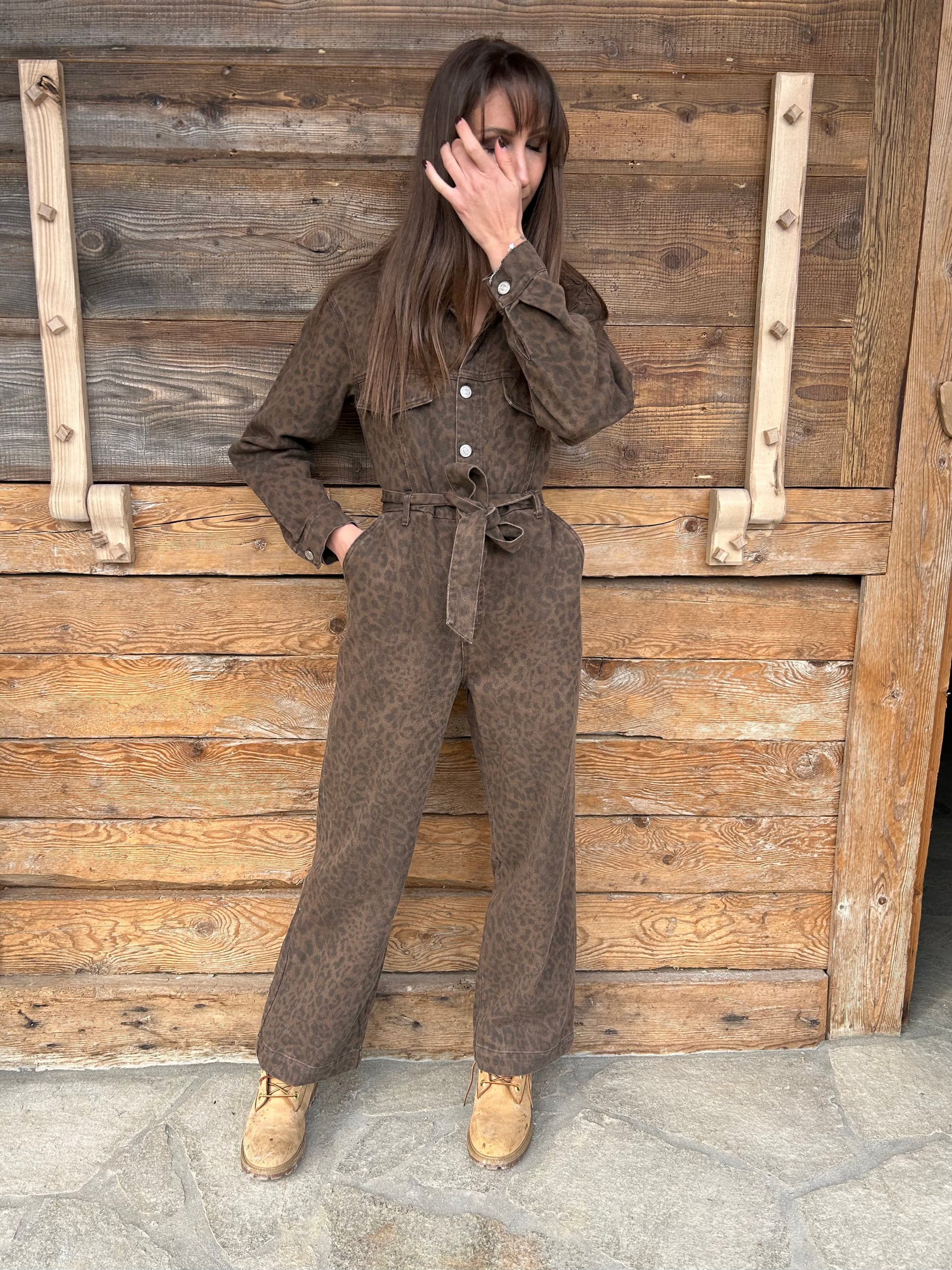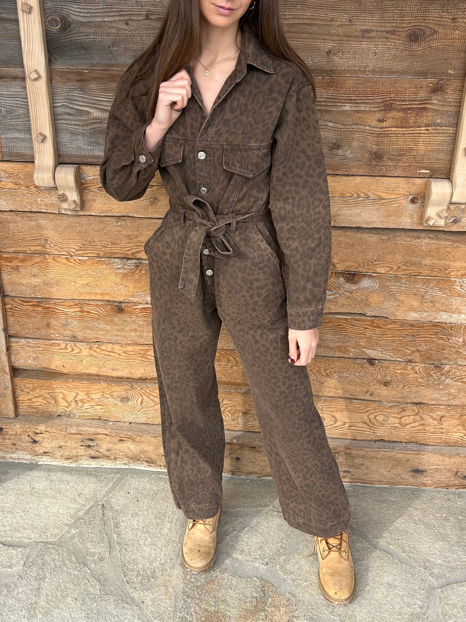 Une combinaison en jeans imprimé léopard à tomber par terre …