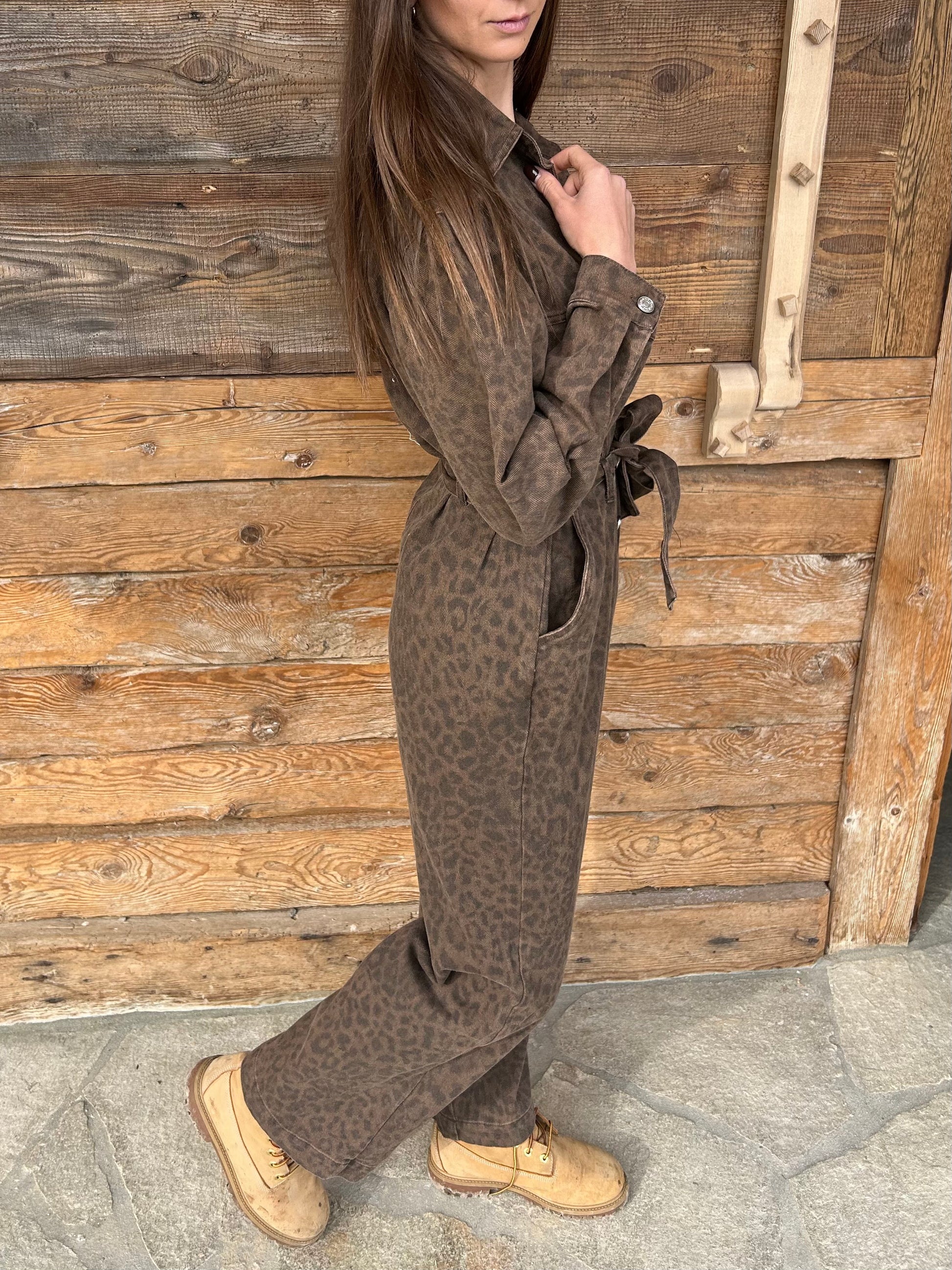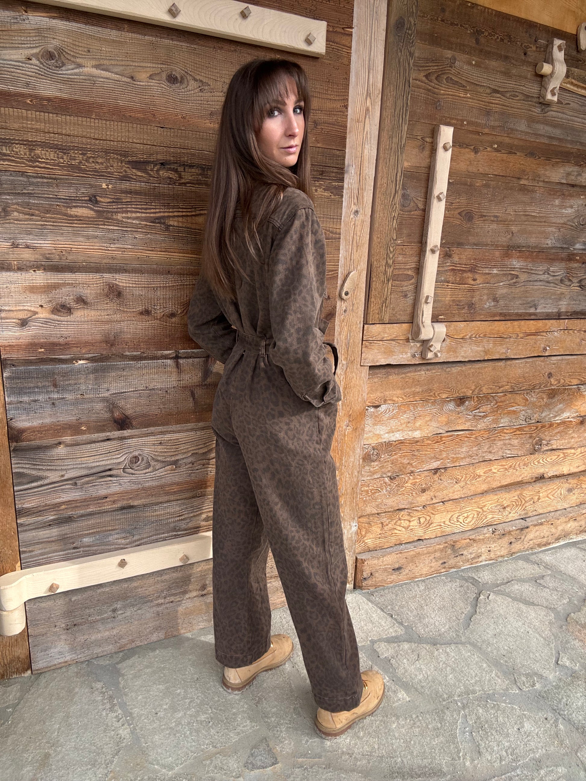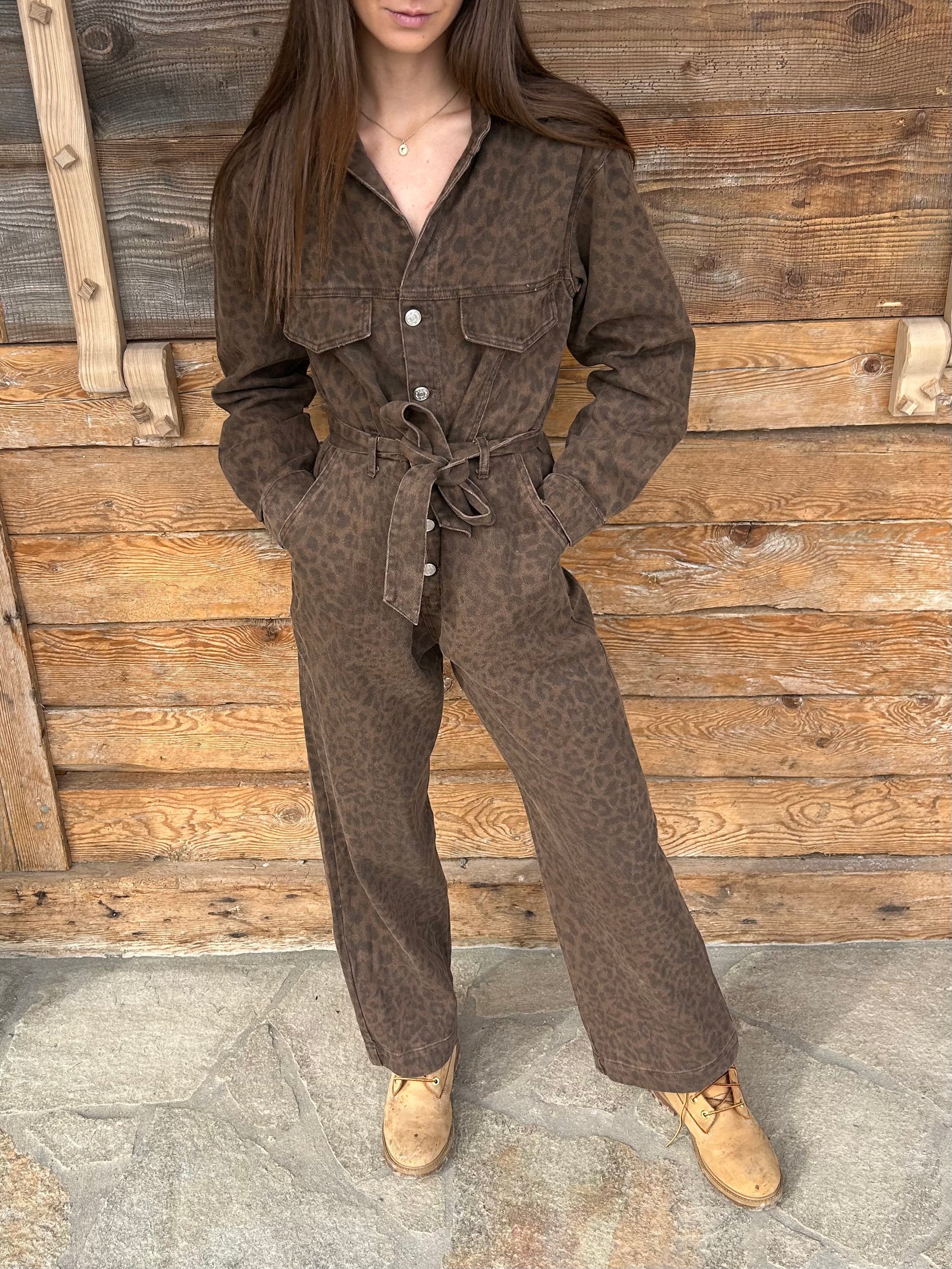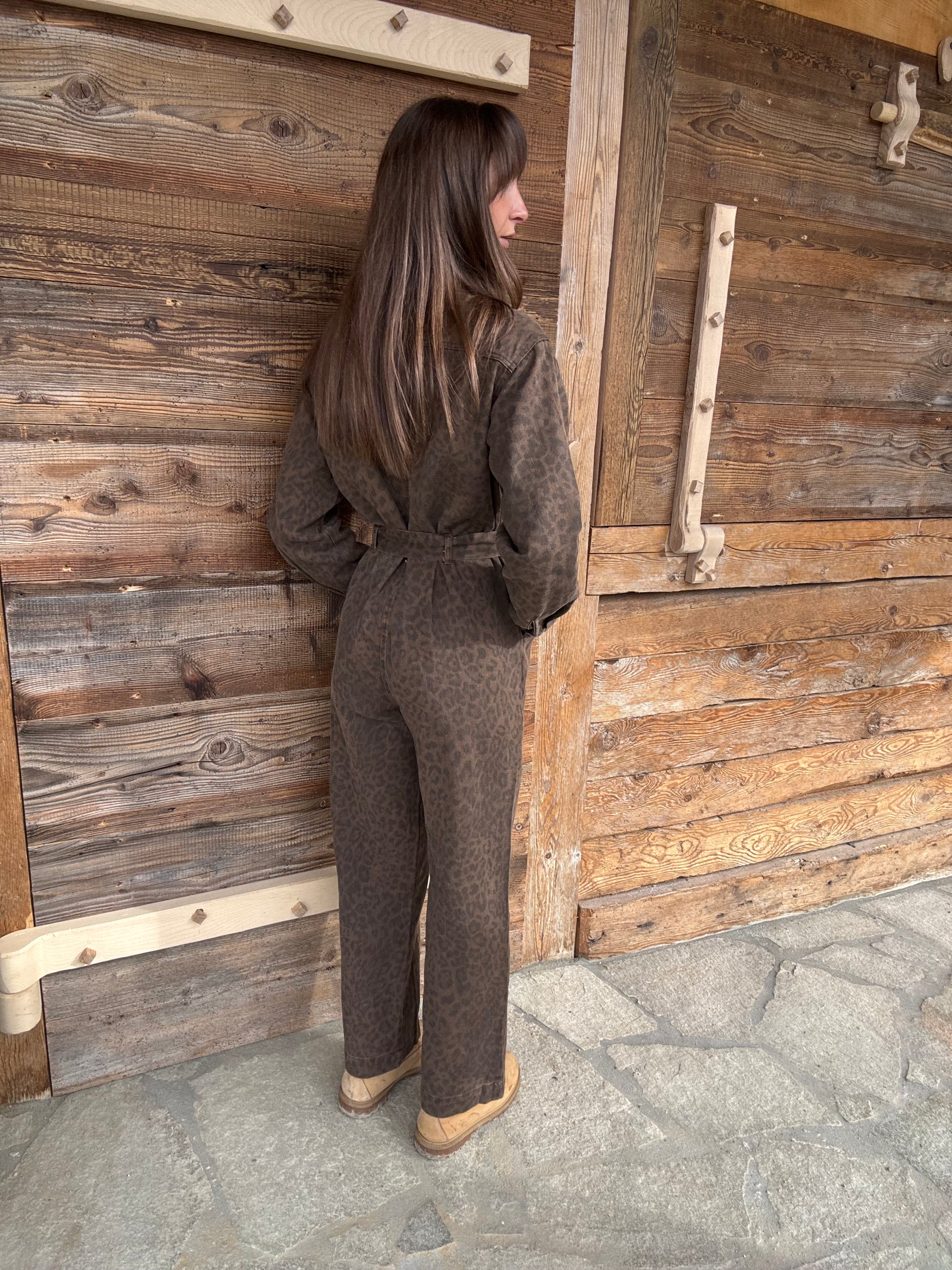 Une combinaison en jeans imprimé léopard à tomber par terre …
