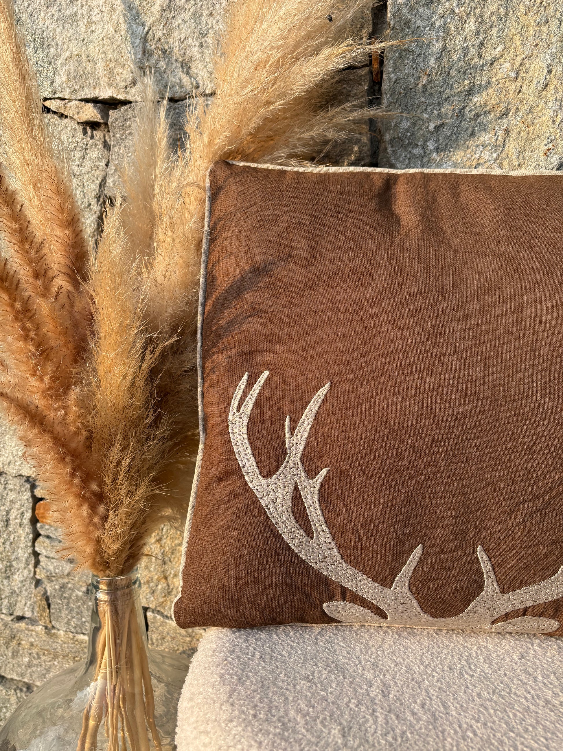 Mais qui voilà ? Nos nouveaux coussins tête de cerf brodé