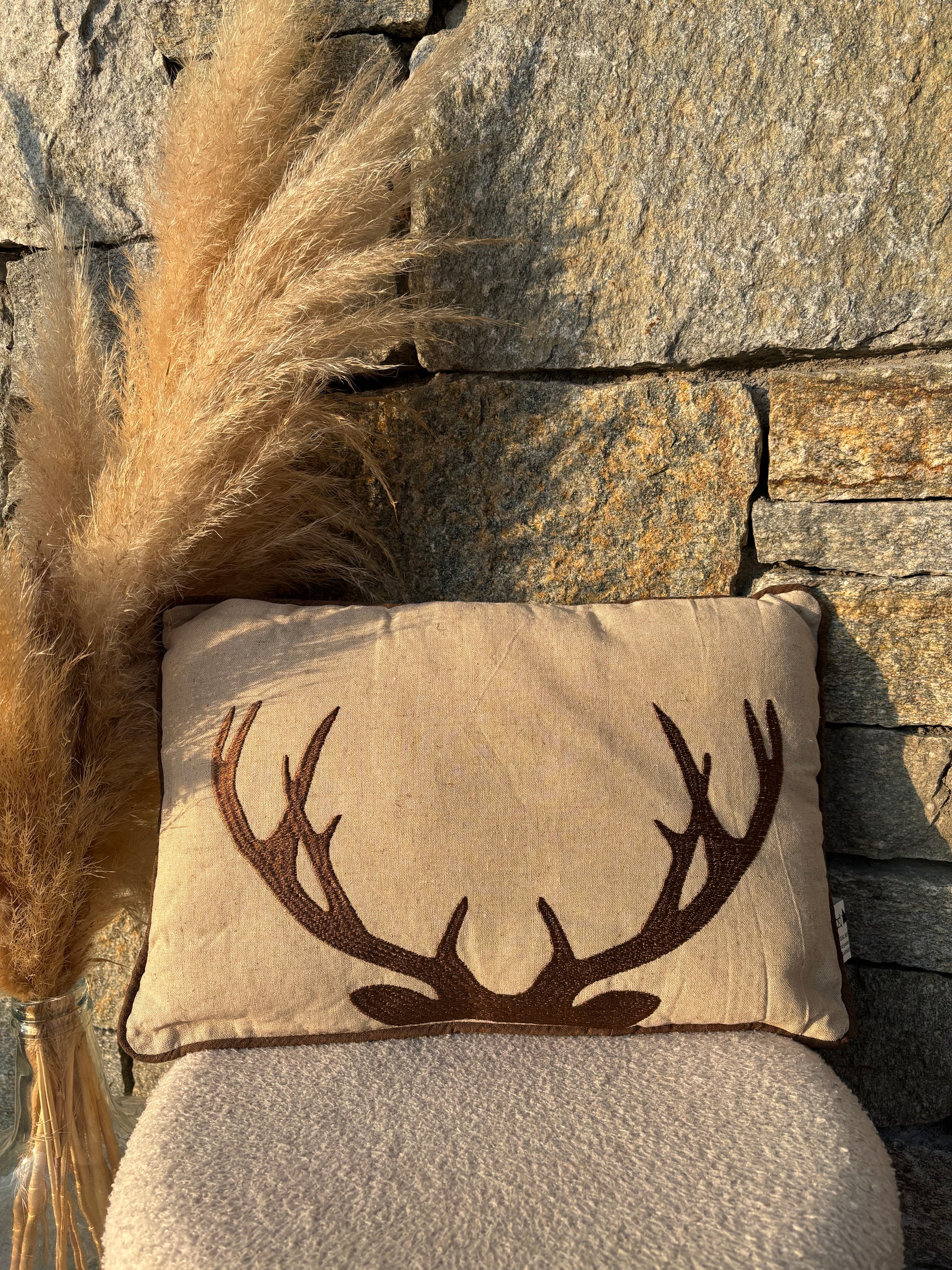 Mais qui voilà ? Nos nouveaux coussins tête de cerf brodé