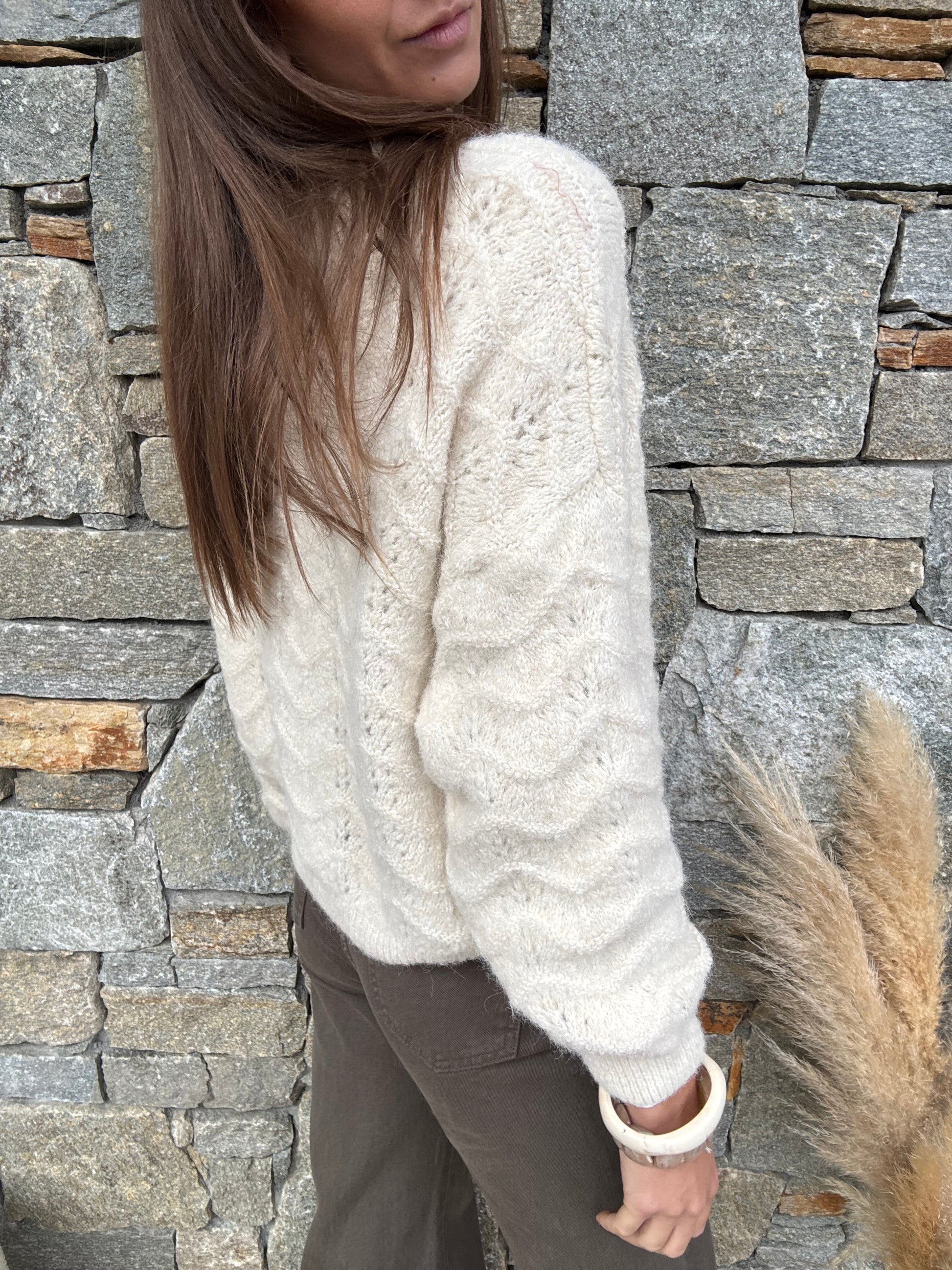 Un petit gilet à maille travaillée en matière recylcé
