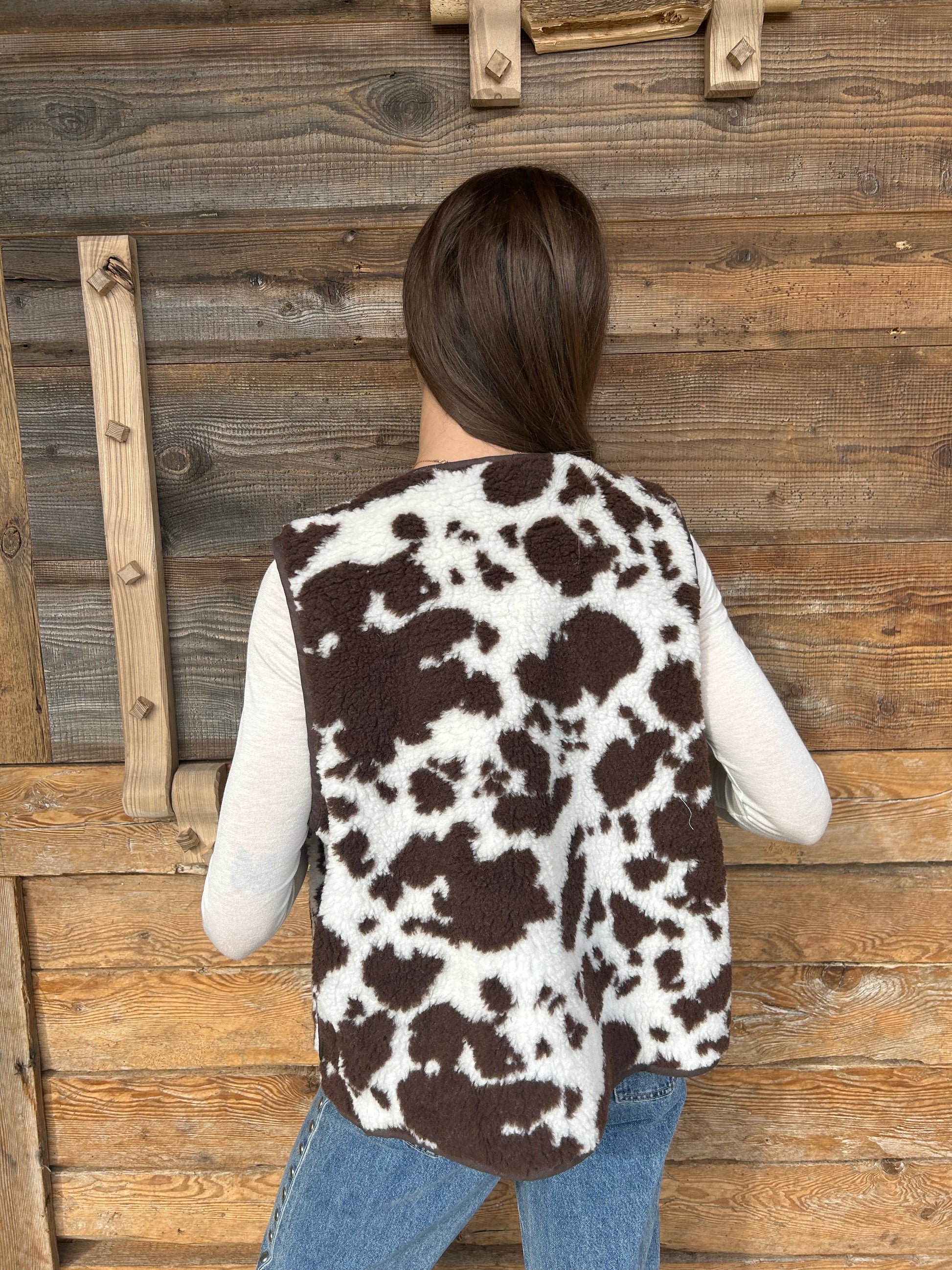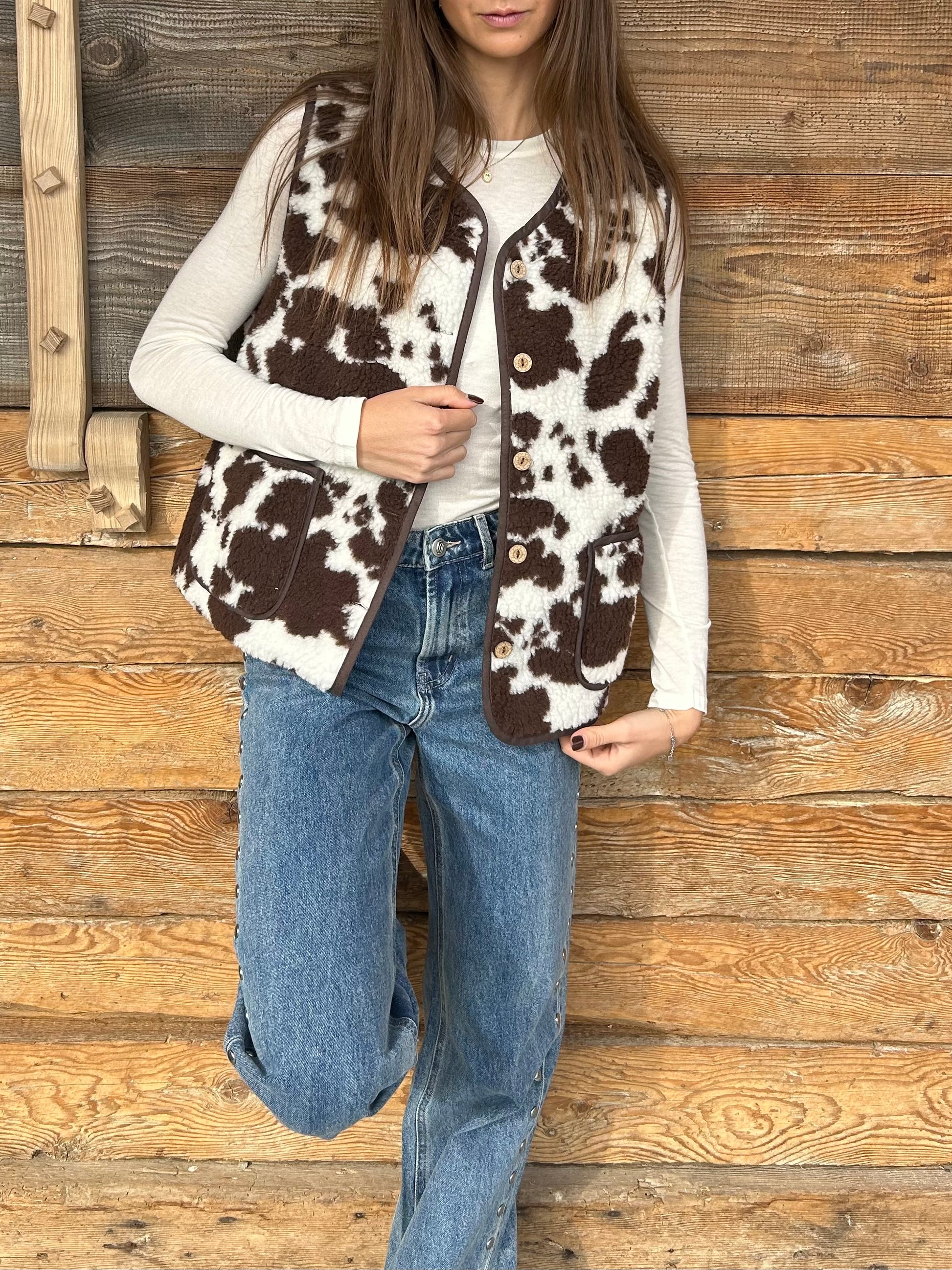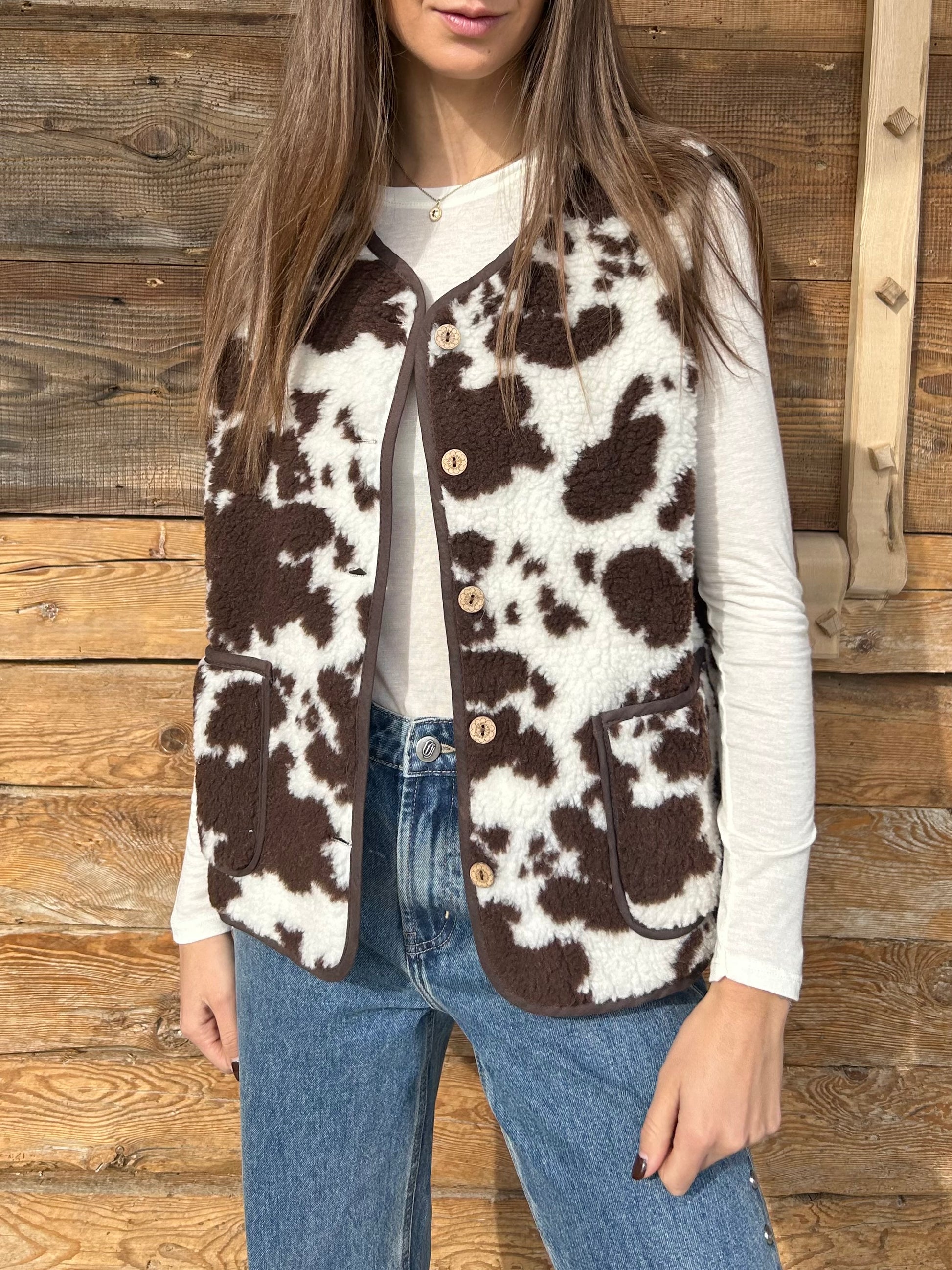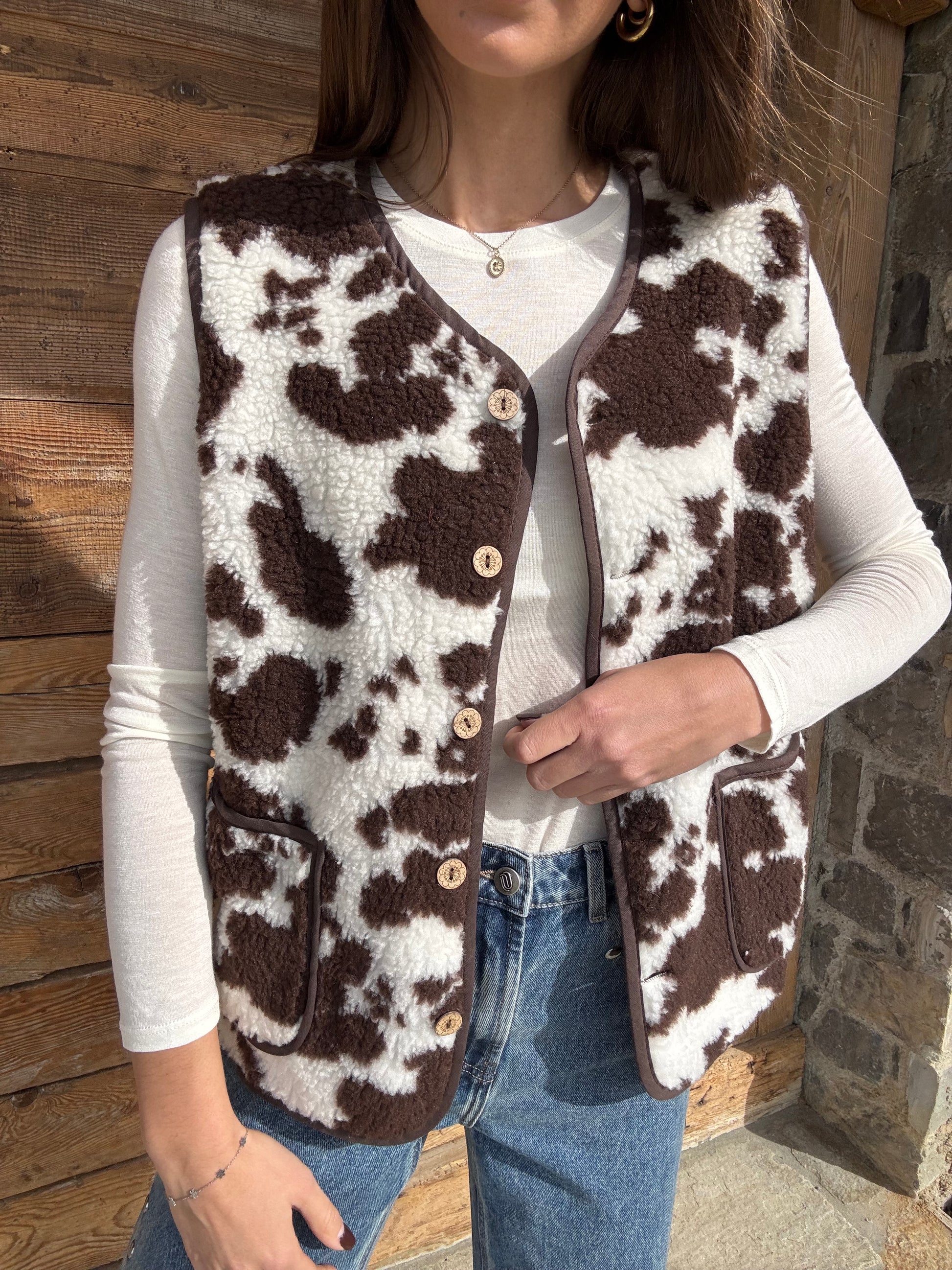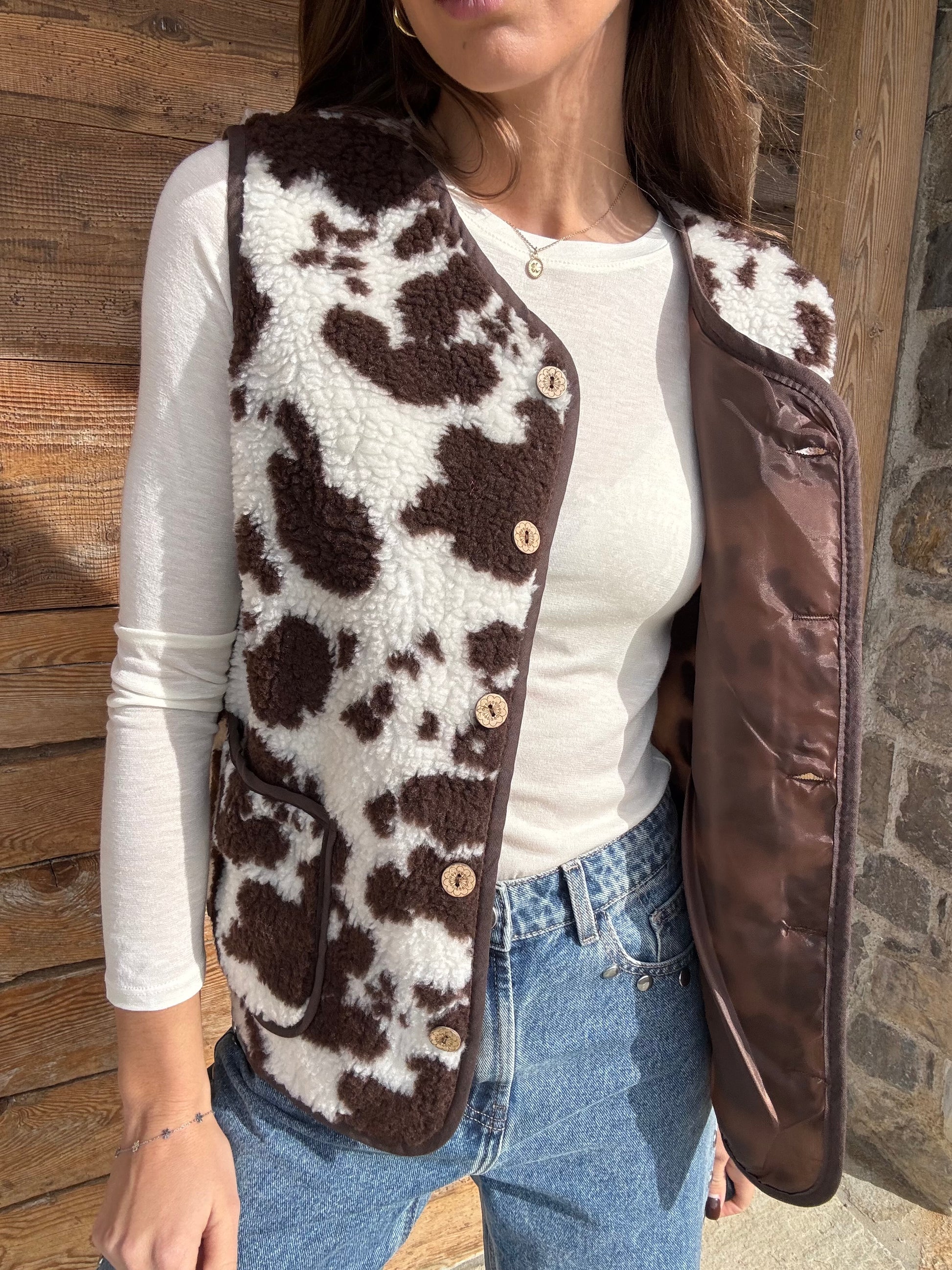 Coup de cœur pour ce gilet en bouclette imprimé vache, très tendance cette saison !!