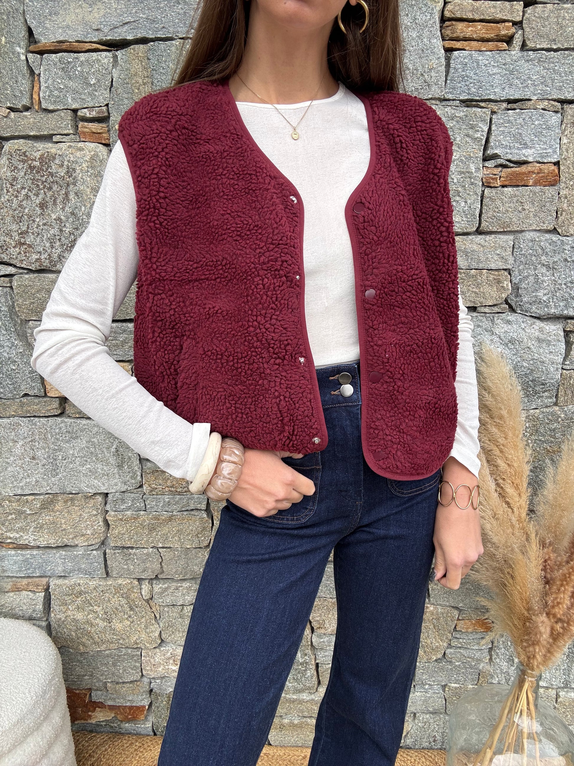 C’est la tendance cette hiver la bouclette, fermeture à boutons, coupe overzize