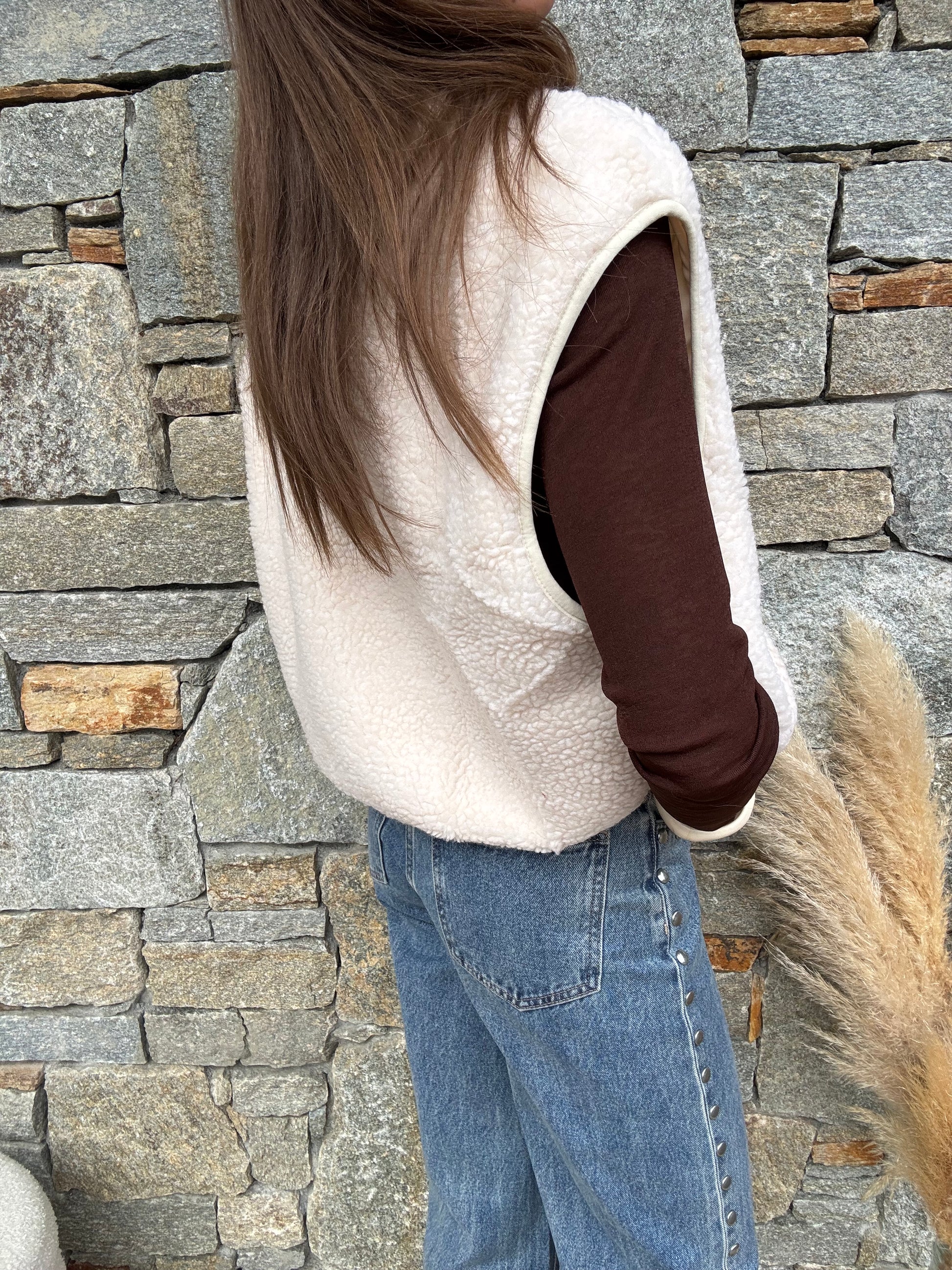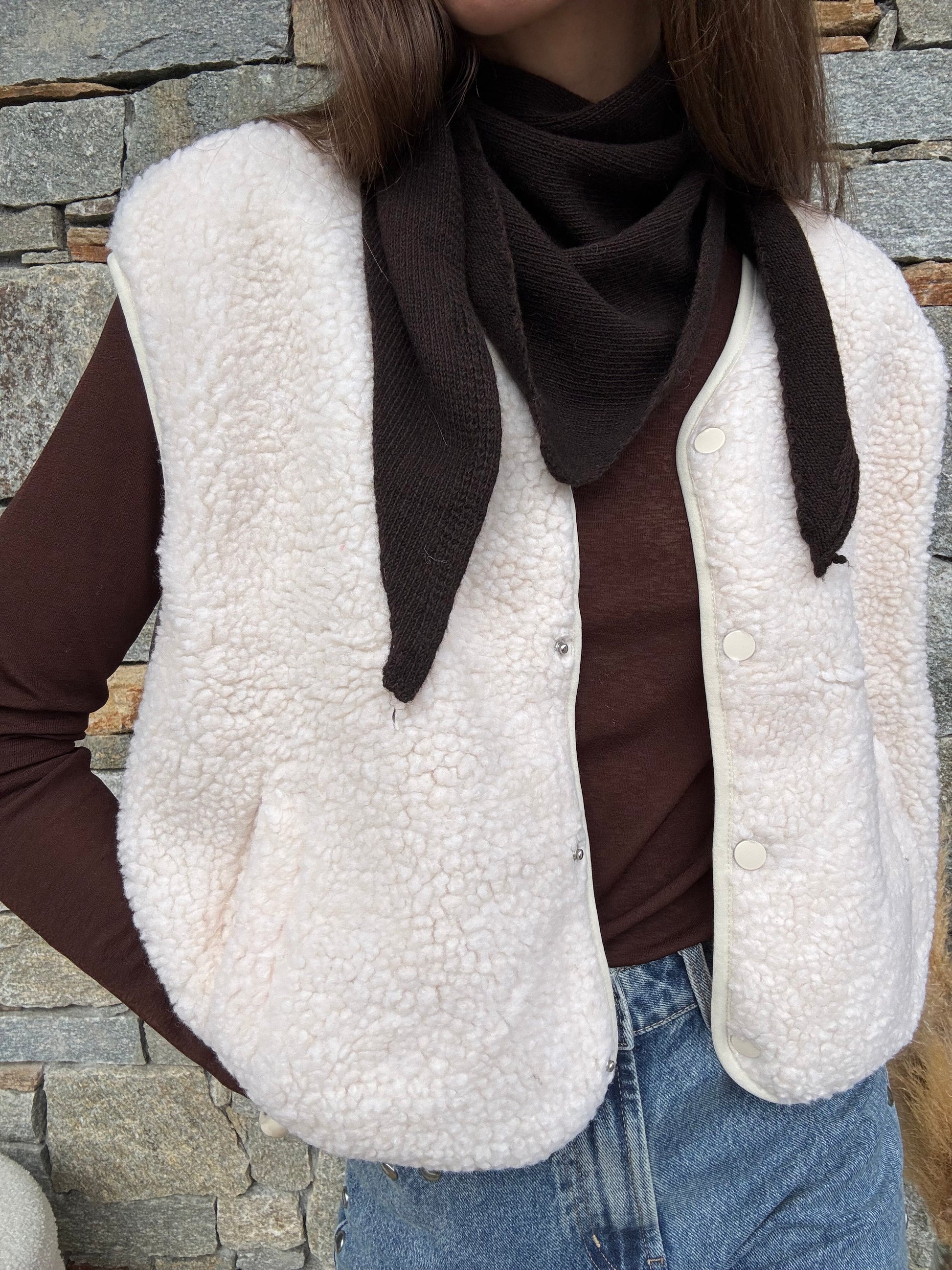 C’est la tendance cette hiver la bouclette, fermeture à boutons, coupe overzize