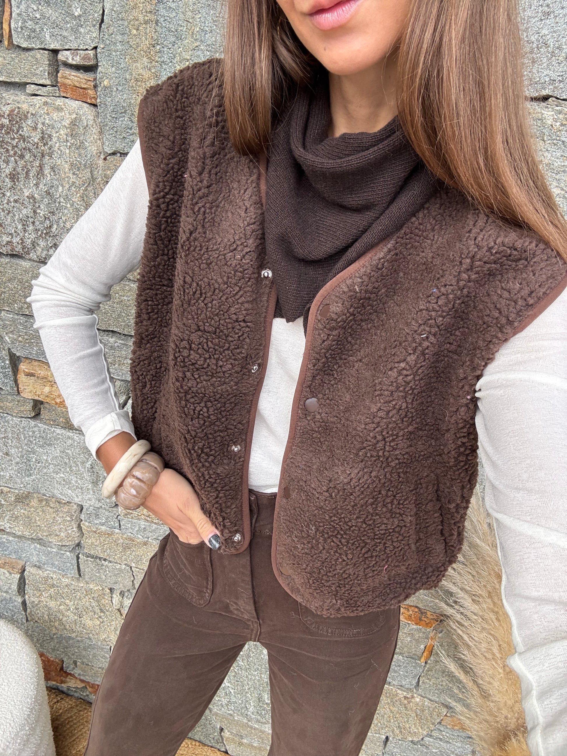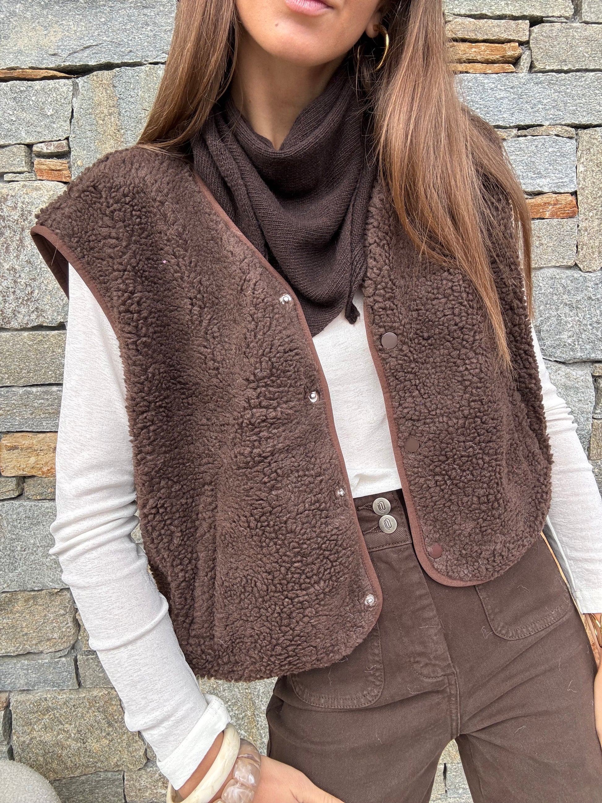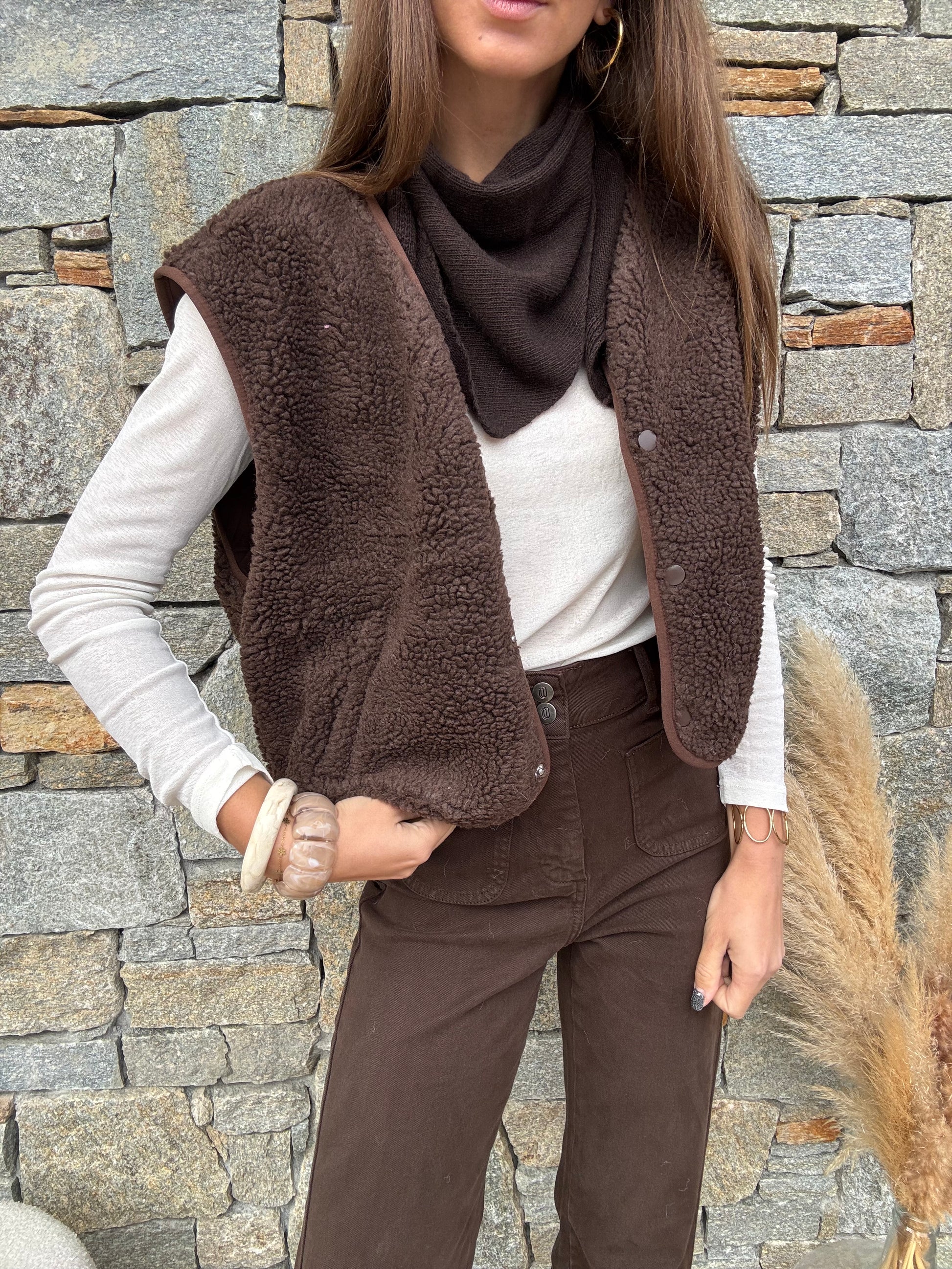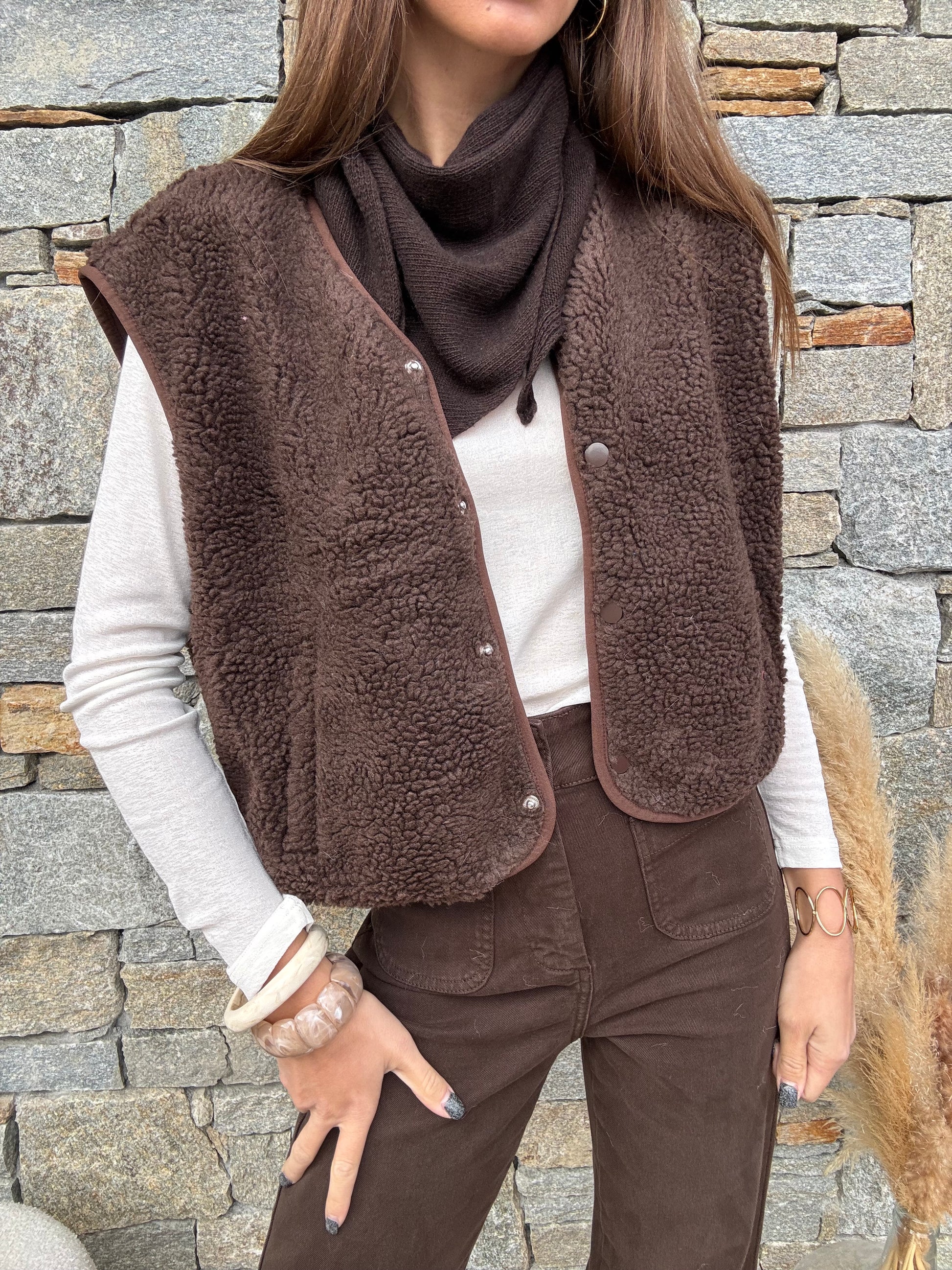 C’est la tendance cette hiver la bouclette, fermeture à boutons, coupe overzize