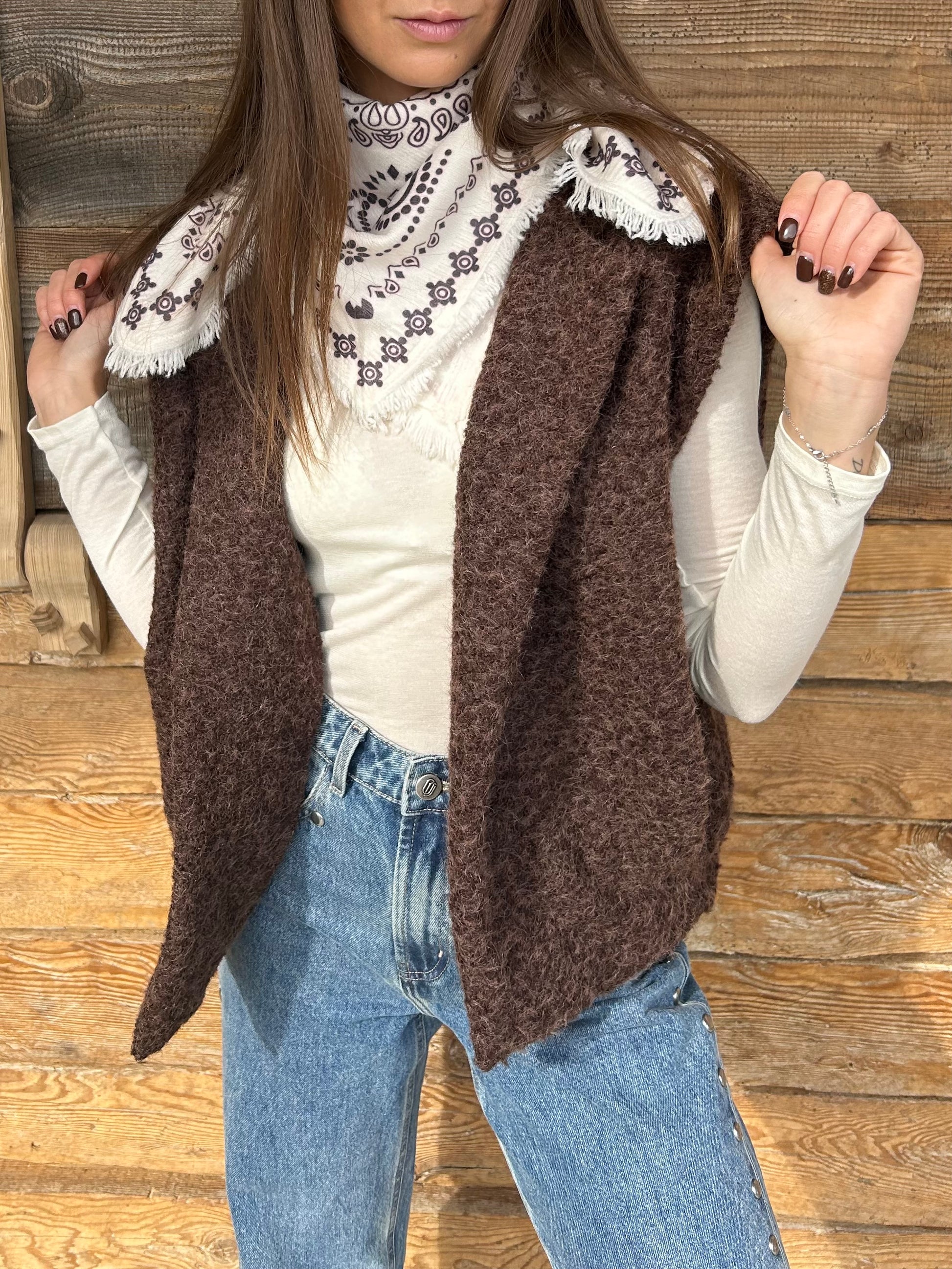 Apportez une touche de douceur et de style à vos tenues avec notre gilet LOUNA. Sa coupe droite s’associent facilement avec un jean large ou une chemise oversize ! Parfait pour superposer vos basiques du quotidien.