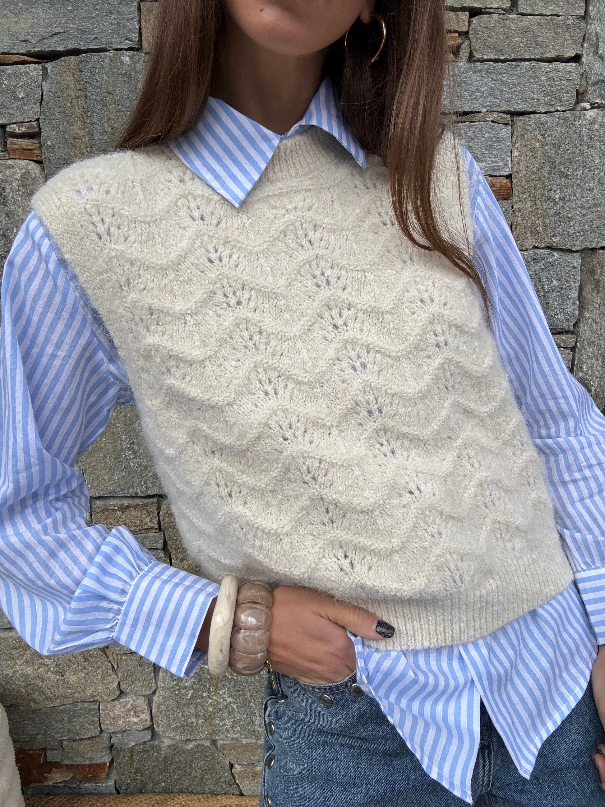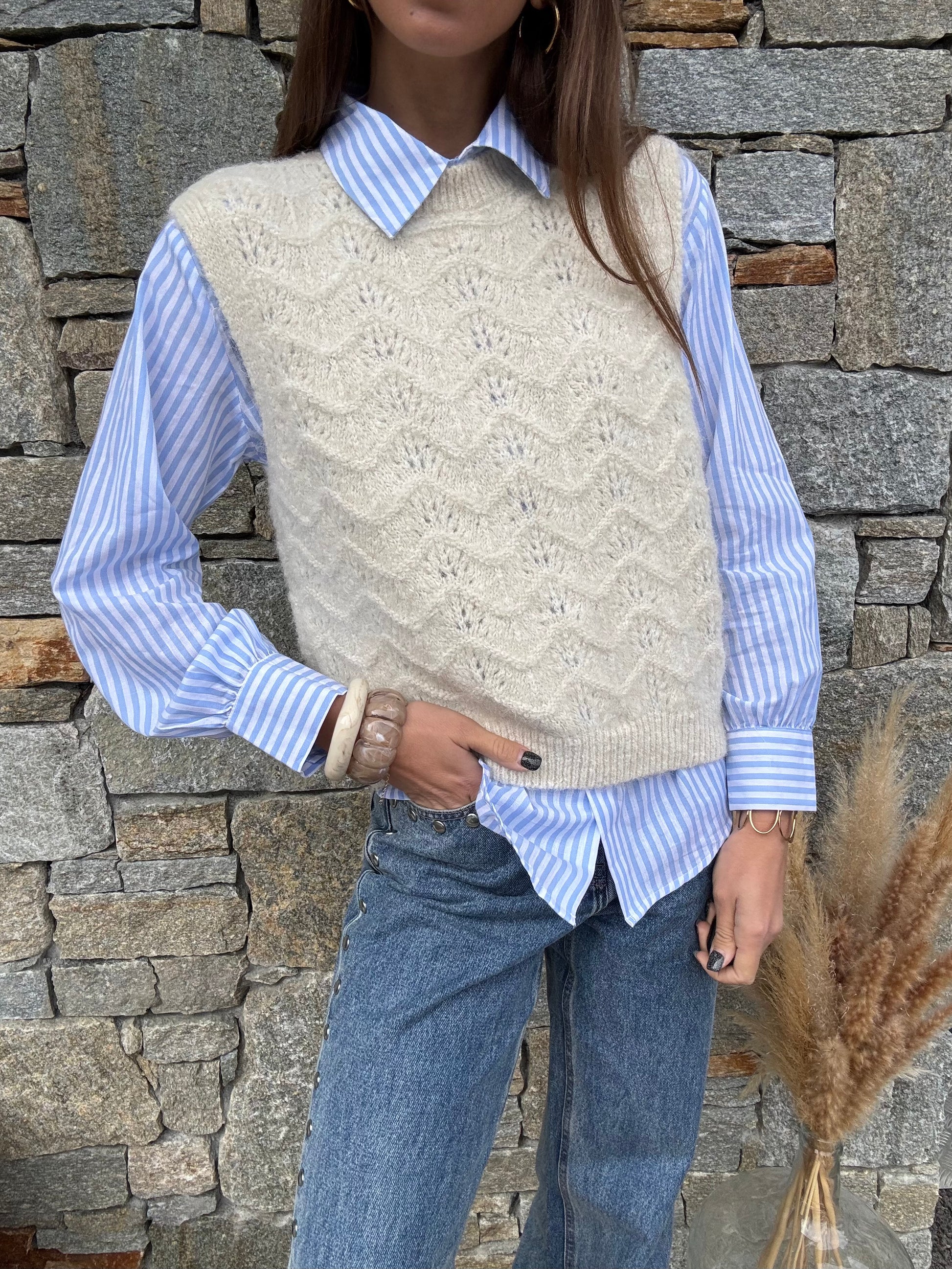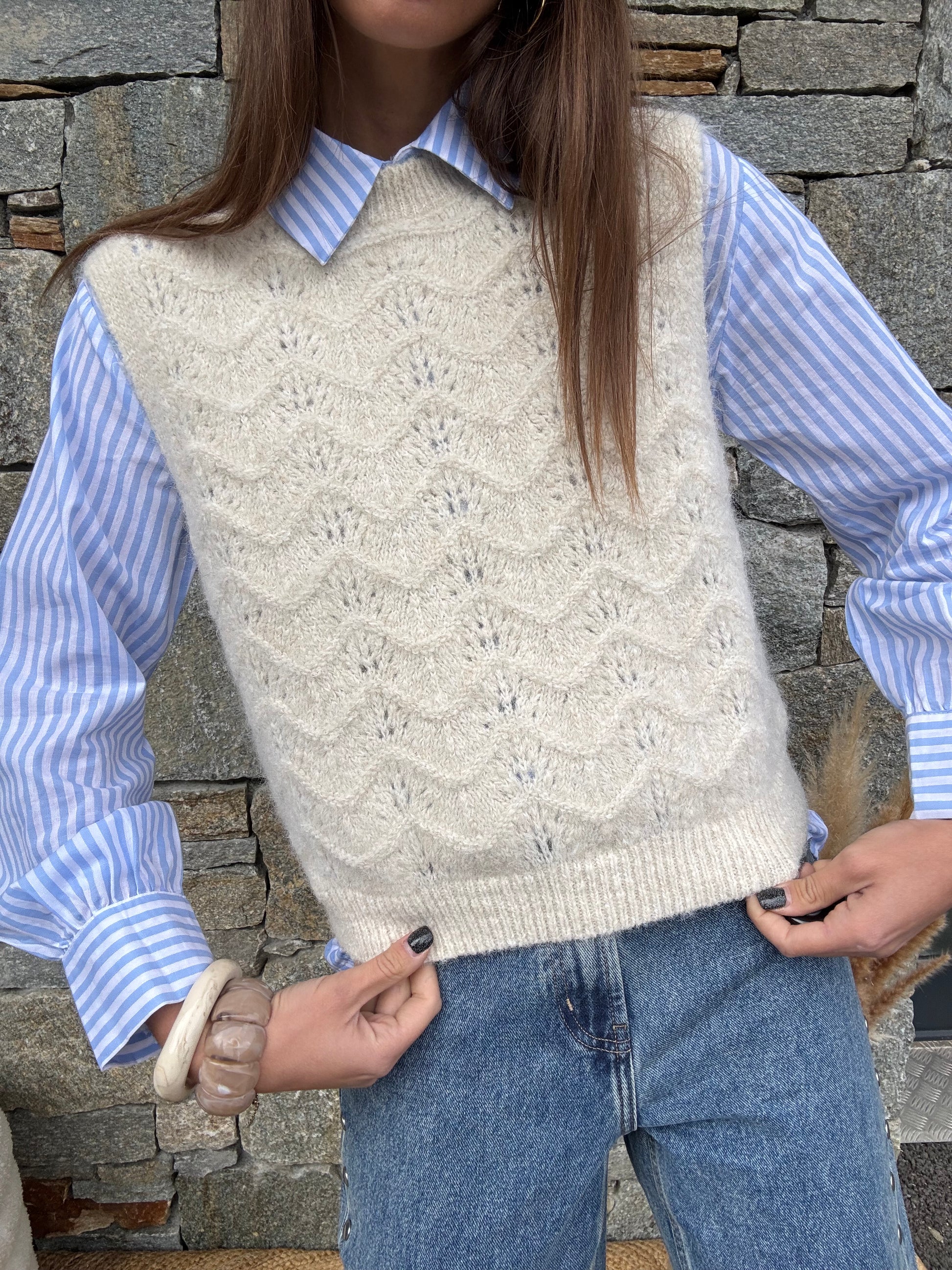 On adore le porter avec une petite chemise en dessous ! Sa maille travaillée nus à fait craquer …