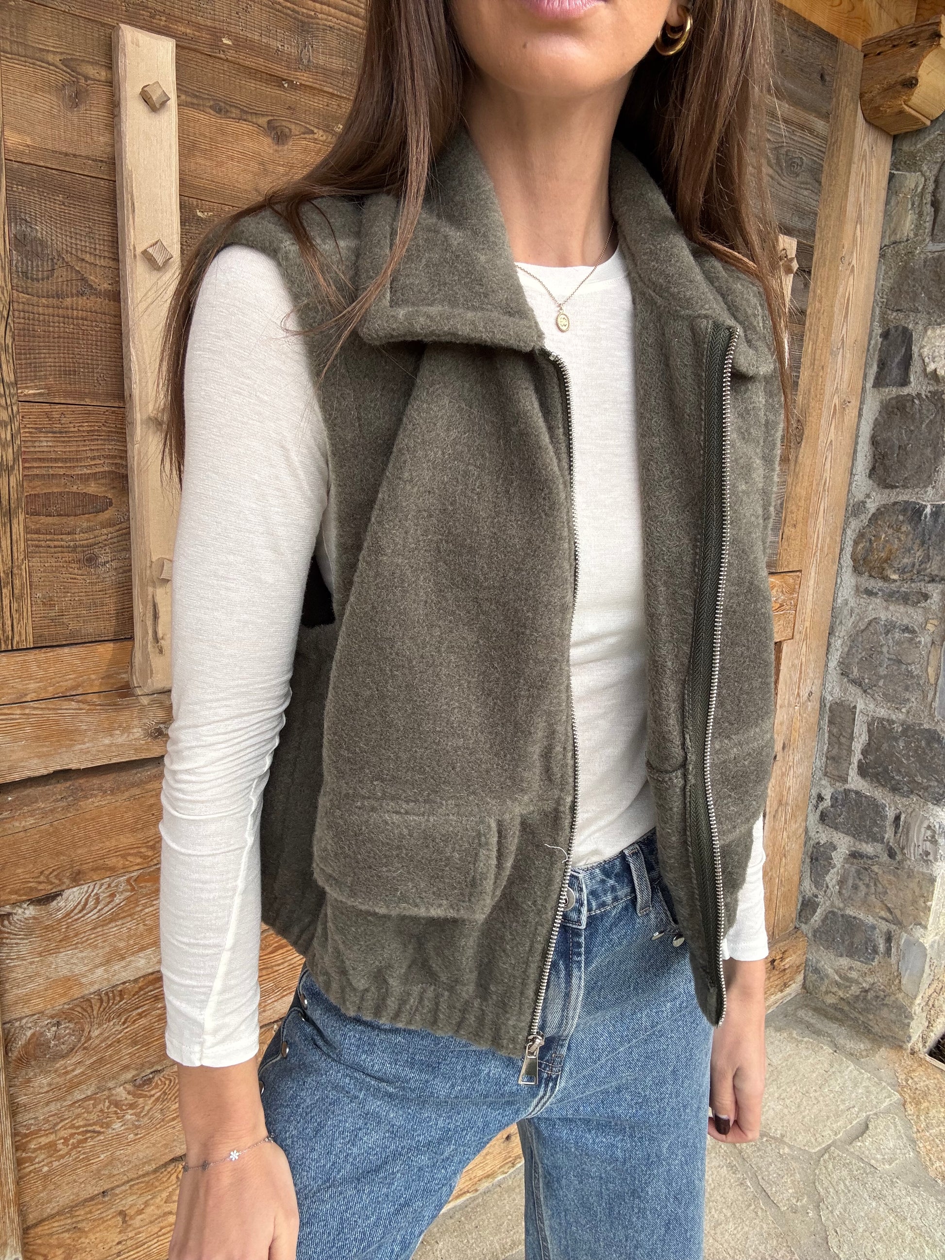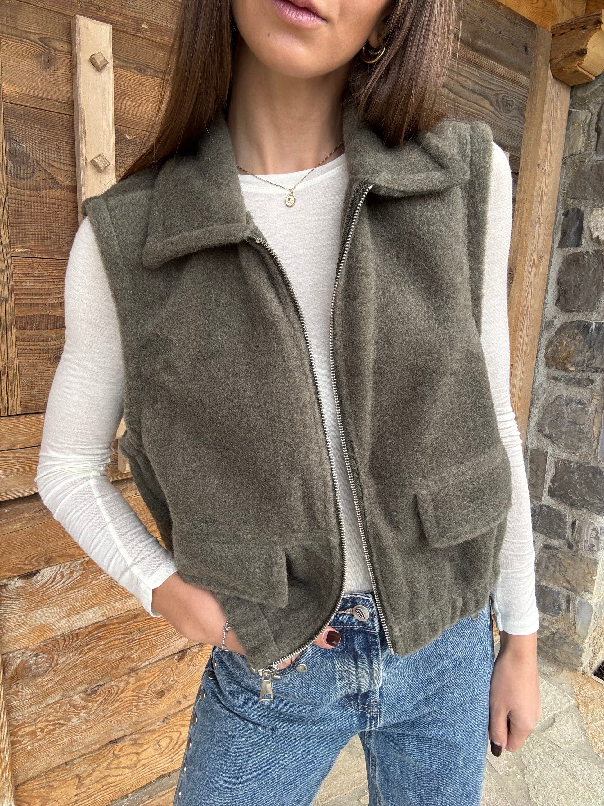 Un petit gilet zippé chic pour un look moderne et confortable. Idéal pour la mi-saison !