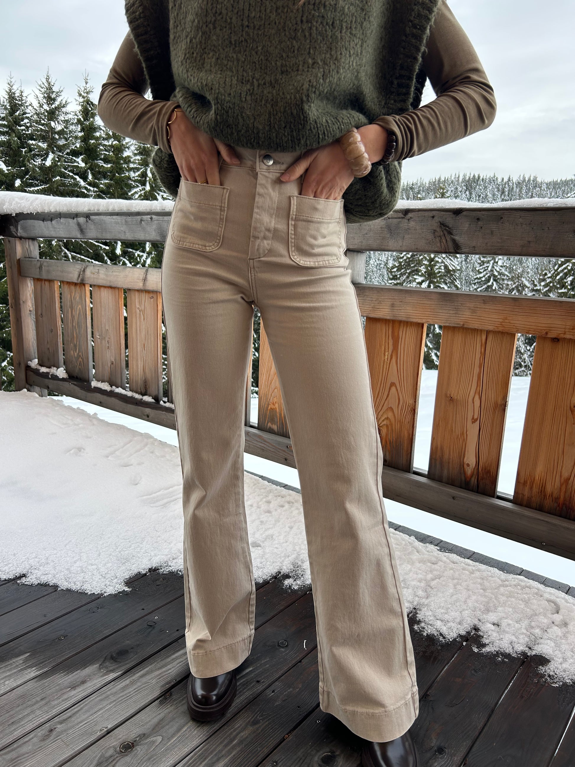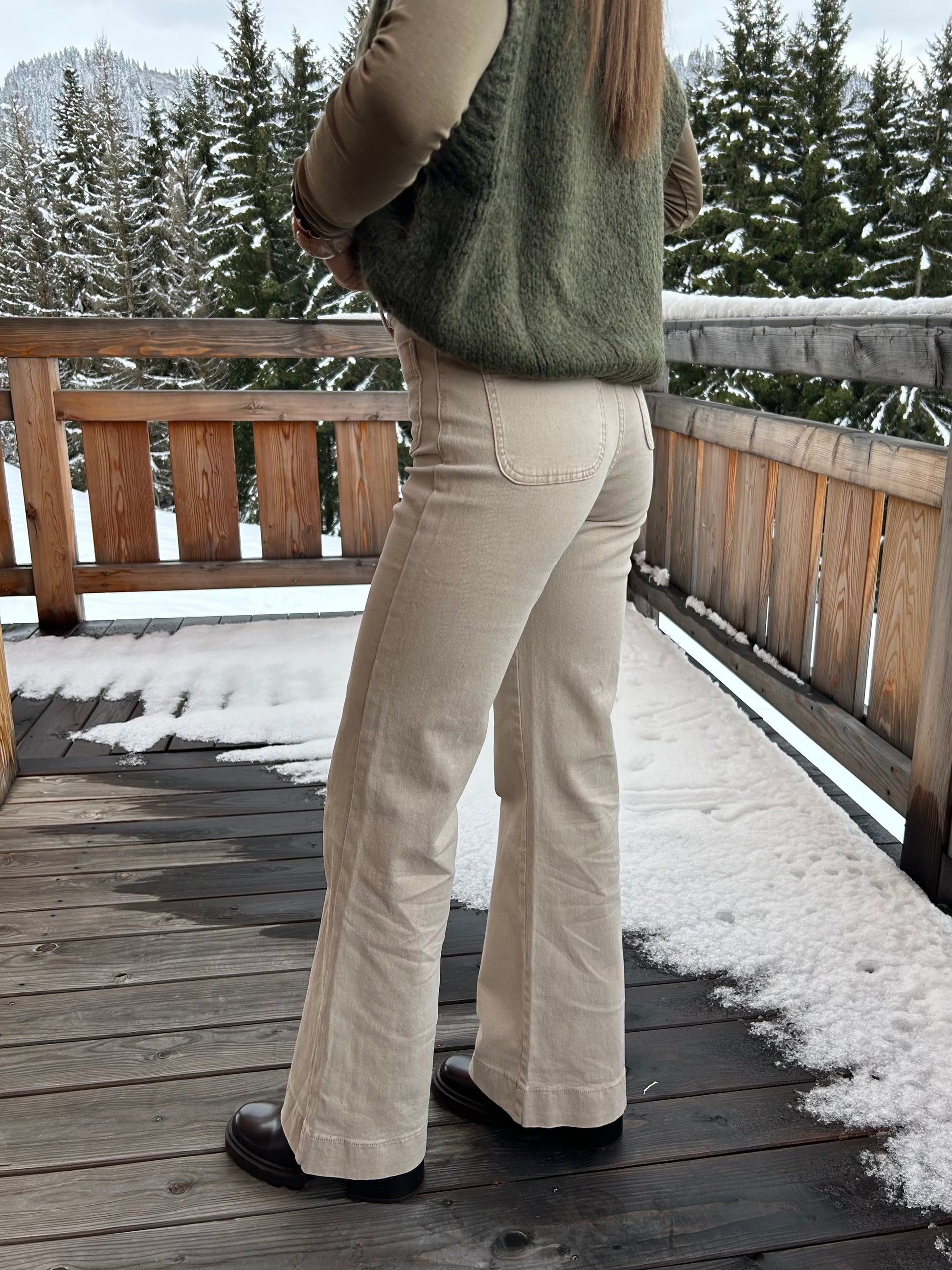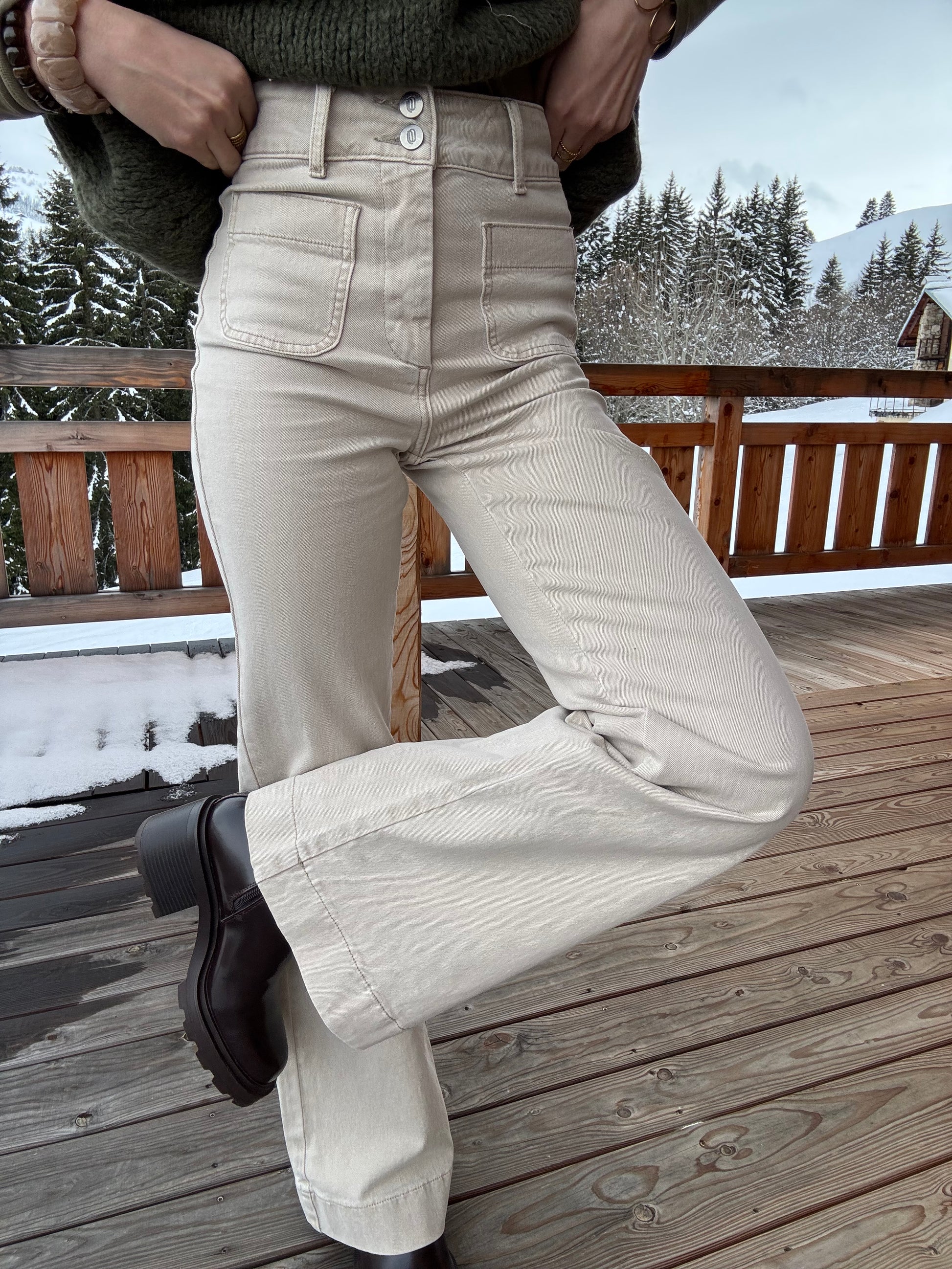 Grâce à sa coupe large flare et sa taille haute, ce jeans flattera votre silhouette en allongeant votre jambe !
