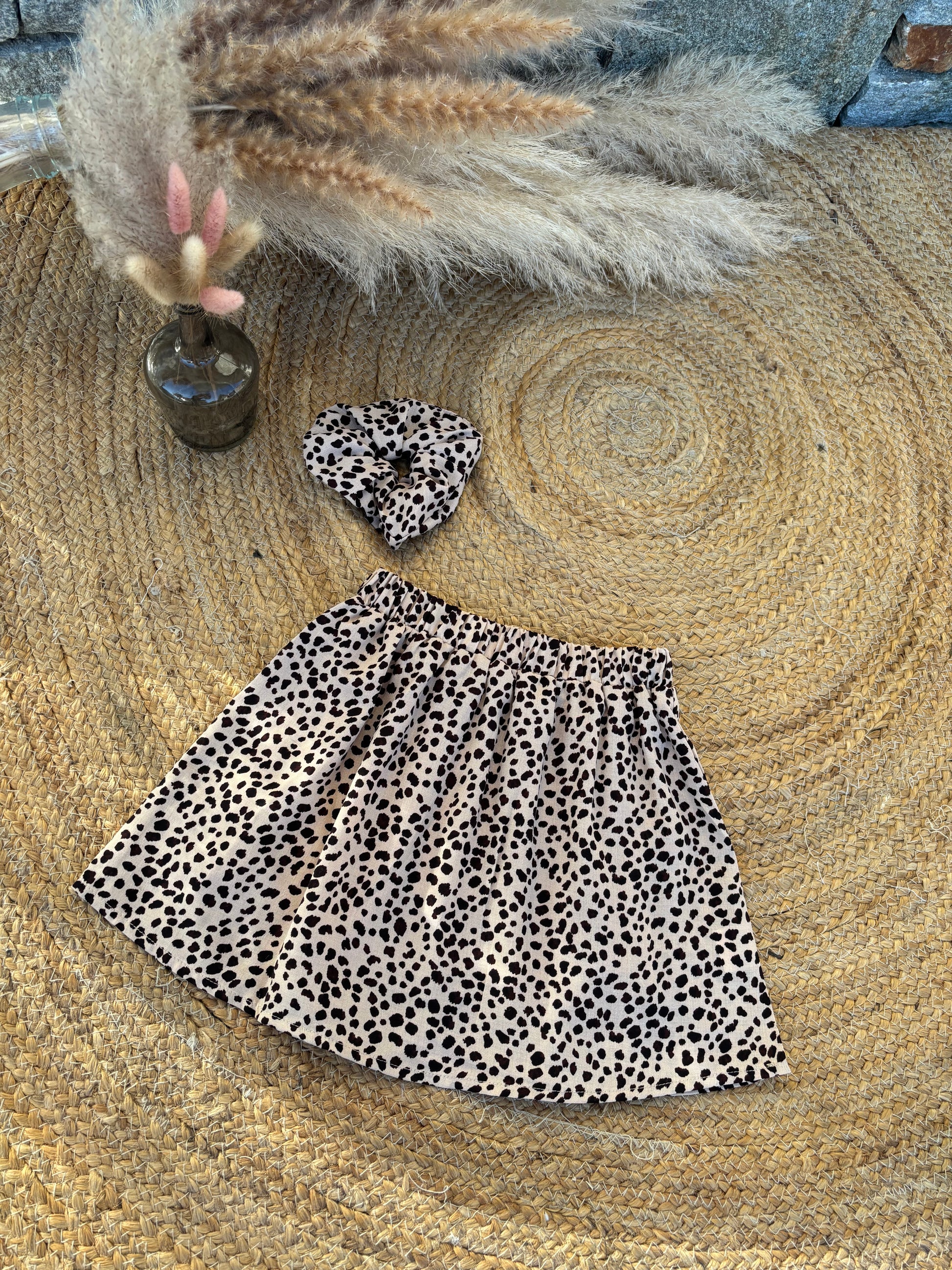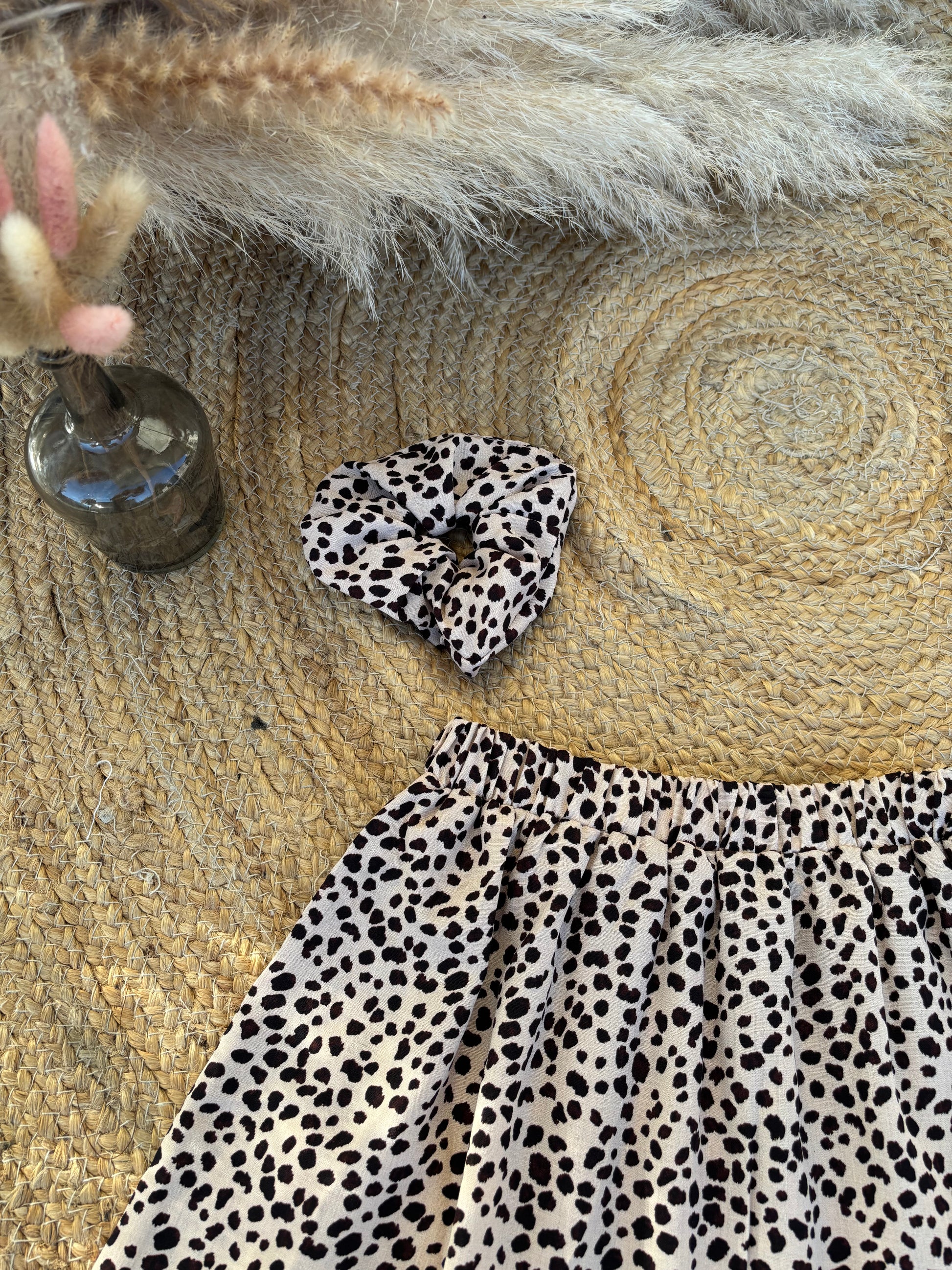 Comment ne pas craquer face à cette petite jupe plissée élastique à la taille et son chouchou assortit !