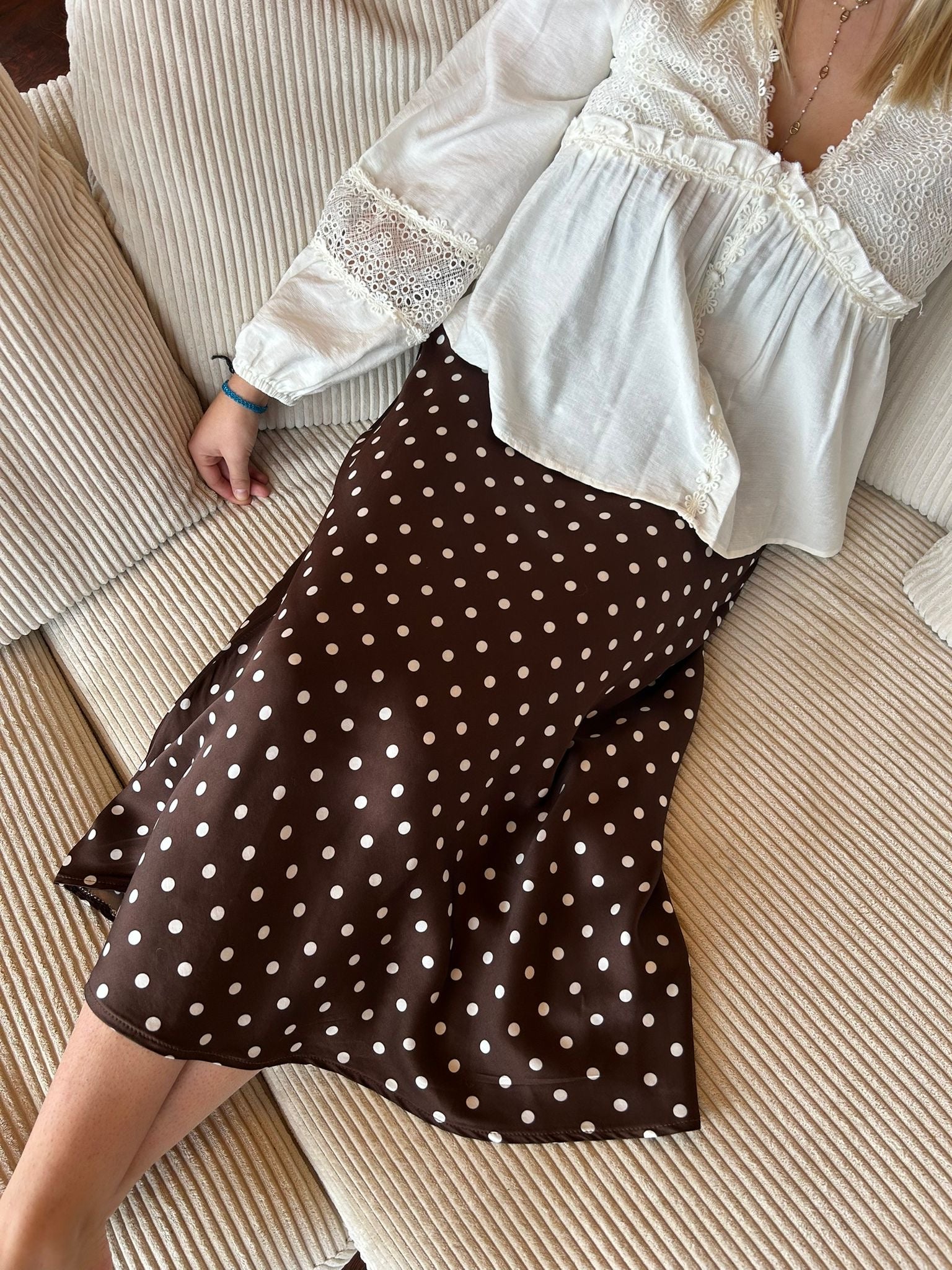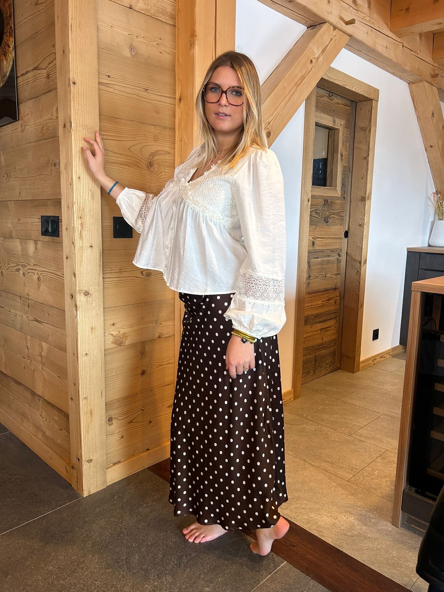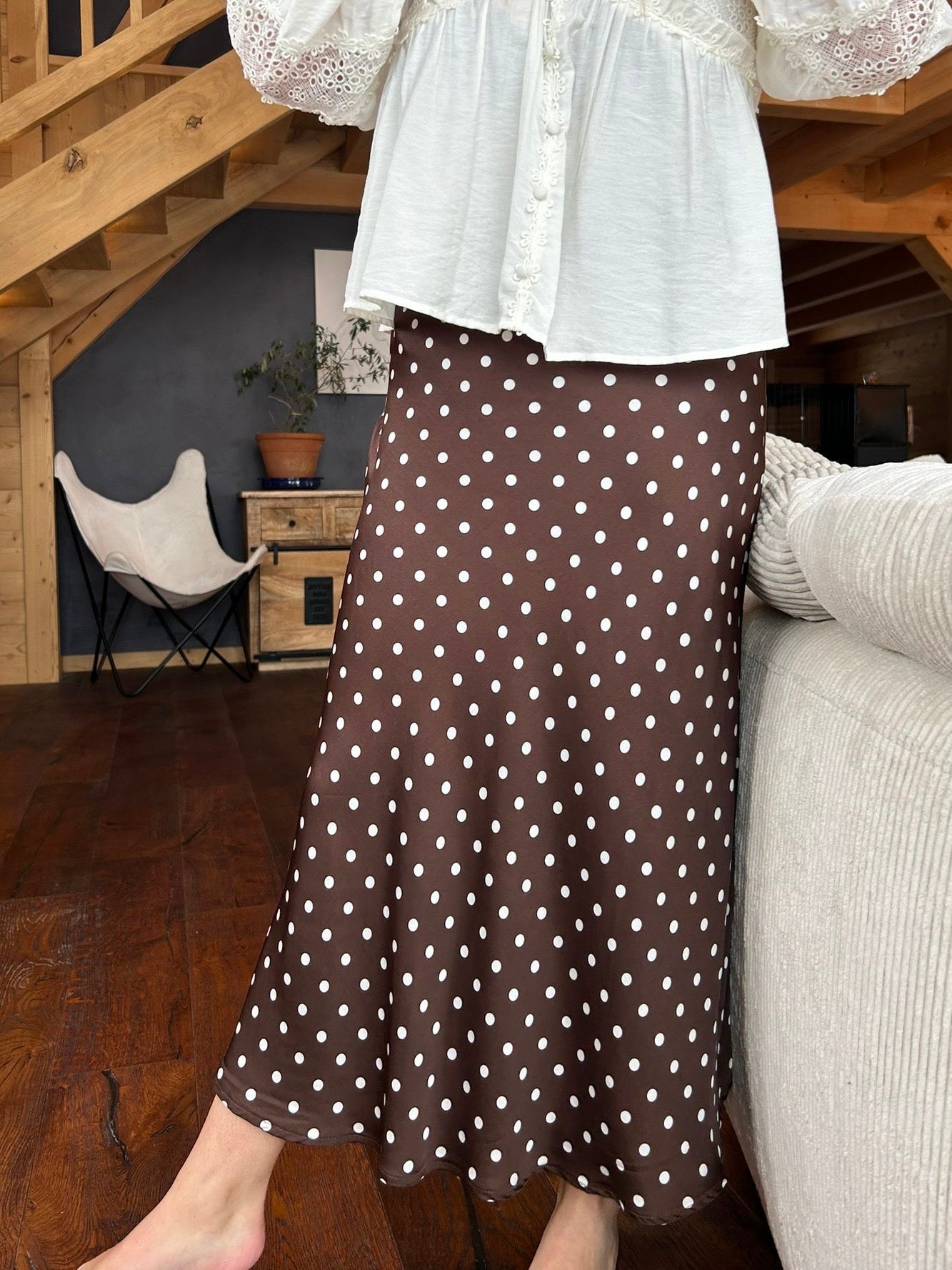 Notre jupe SOFIA à pois ! Une jupe chic à porter avec des baskets ou des bottines, en été ou en hiver c’est un classique de la garde robe.