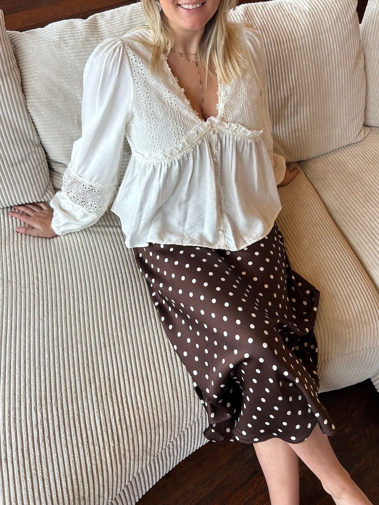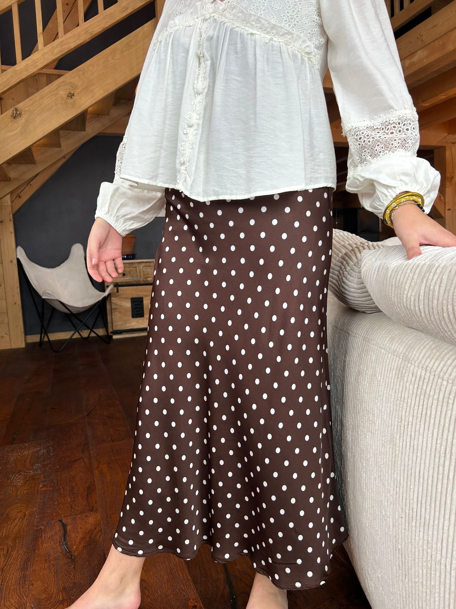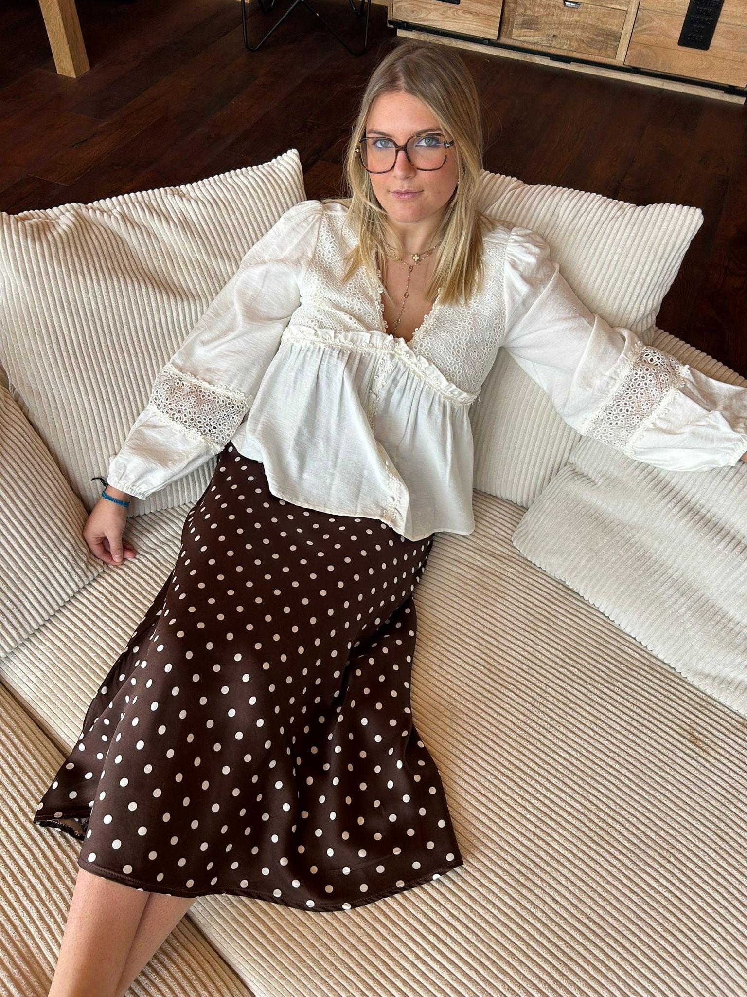 Notre jupe SOFIA à pois ! Une jupe chic à porter avec des baskets ou des bottines, en été ou en hiver c’est un classique de la garde robe.
