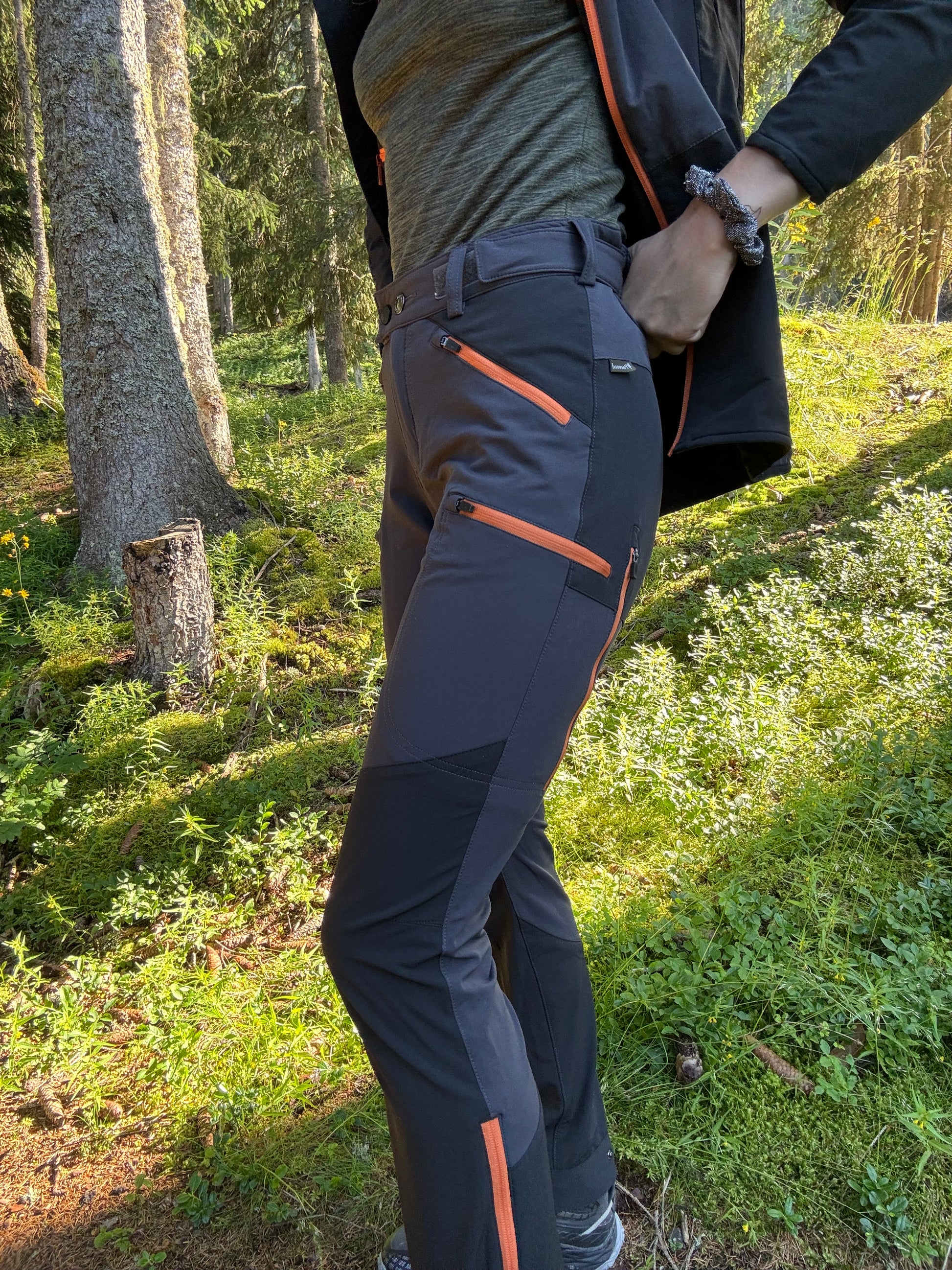 Notre pantalon multifonctions en stretch avec de bonnes ventilations. Ajustement parfait des jambes. Léger et coupe-vent ce pantalon est déperlant