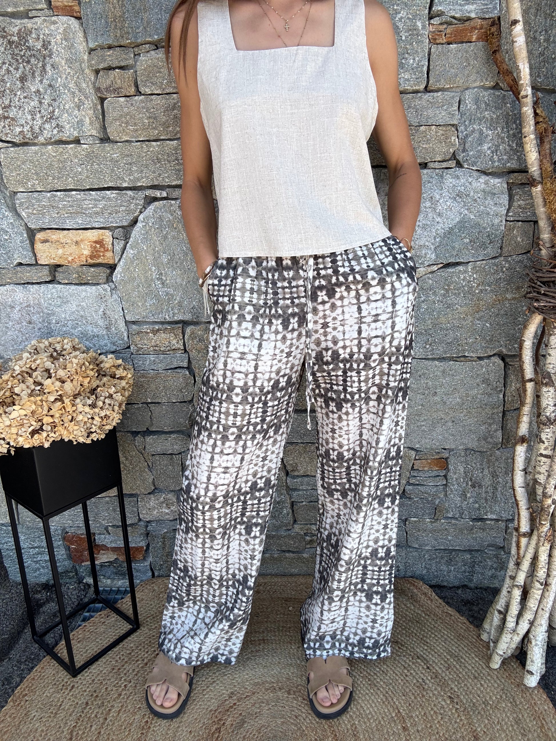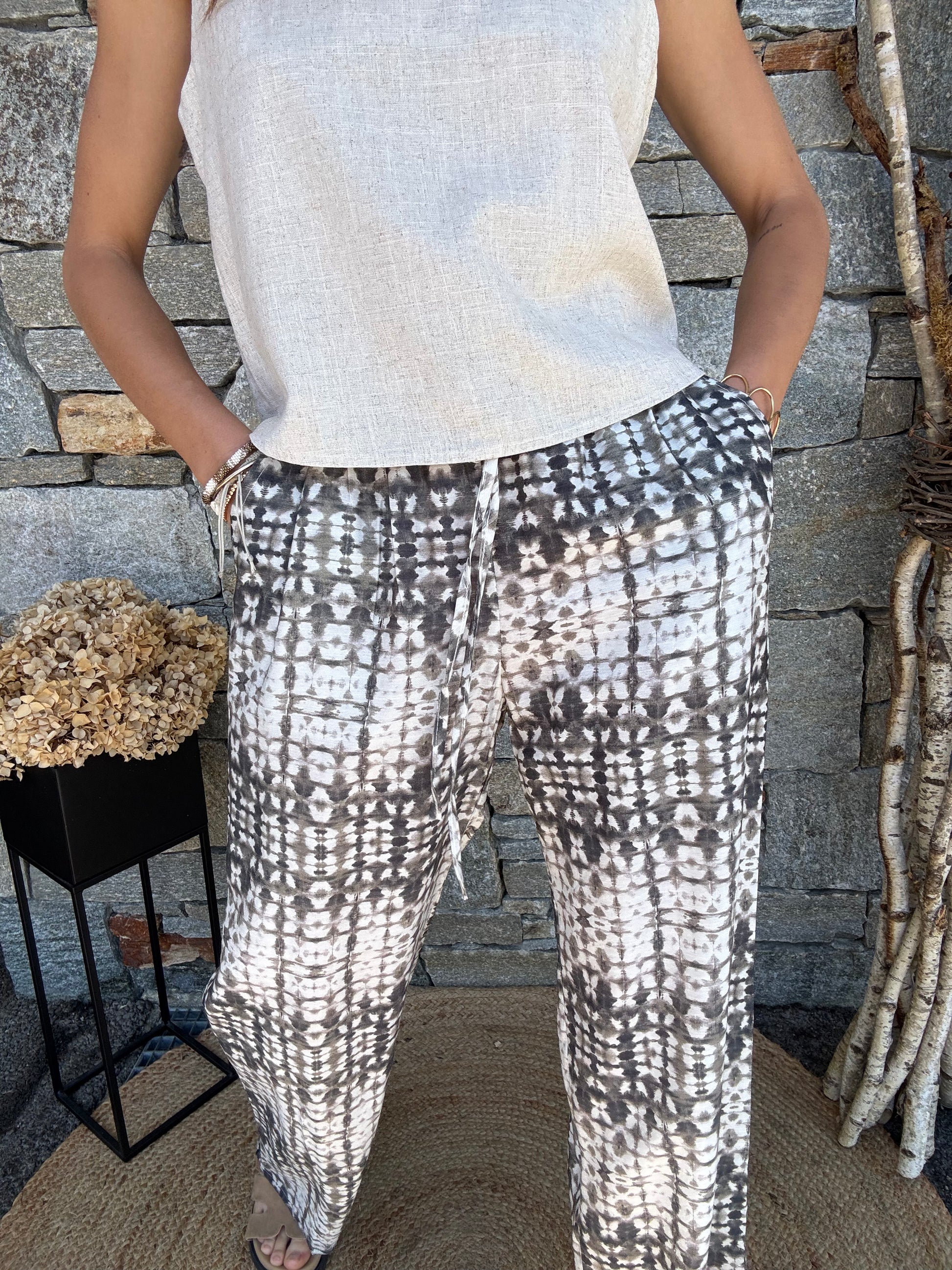 Élastique à la taille, 2 poches sur l'avant, cordons serrage à la taille