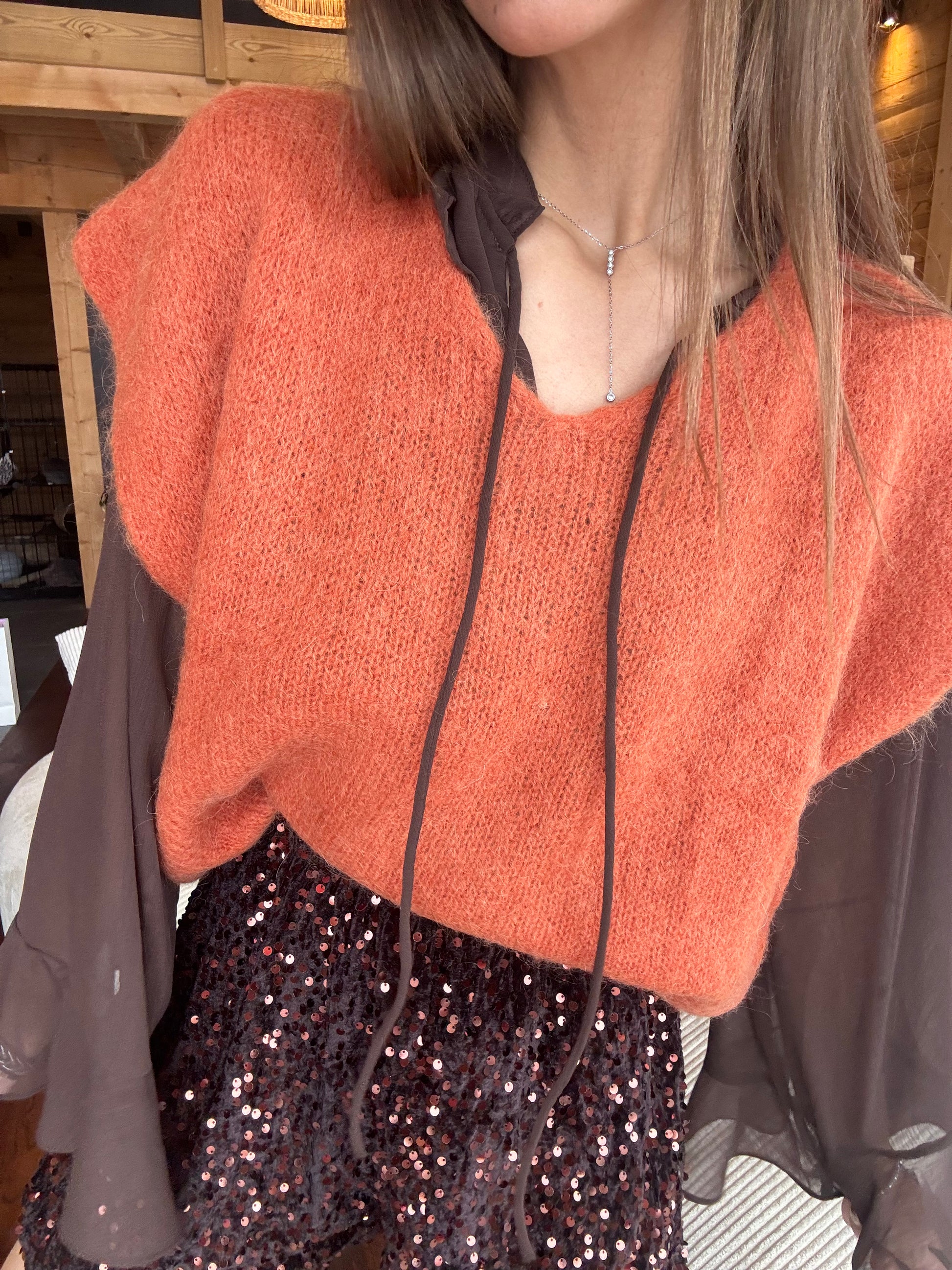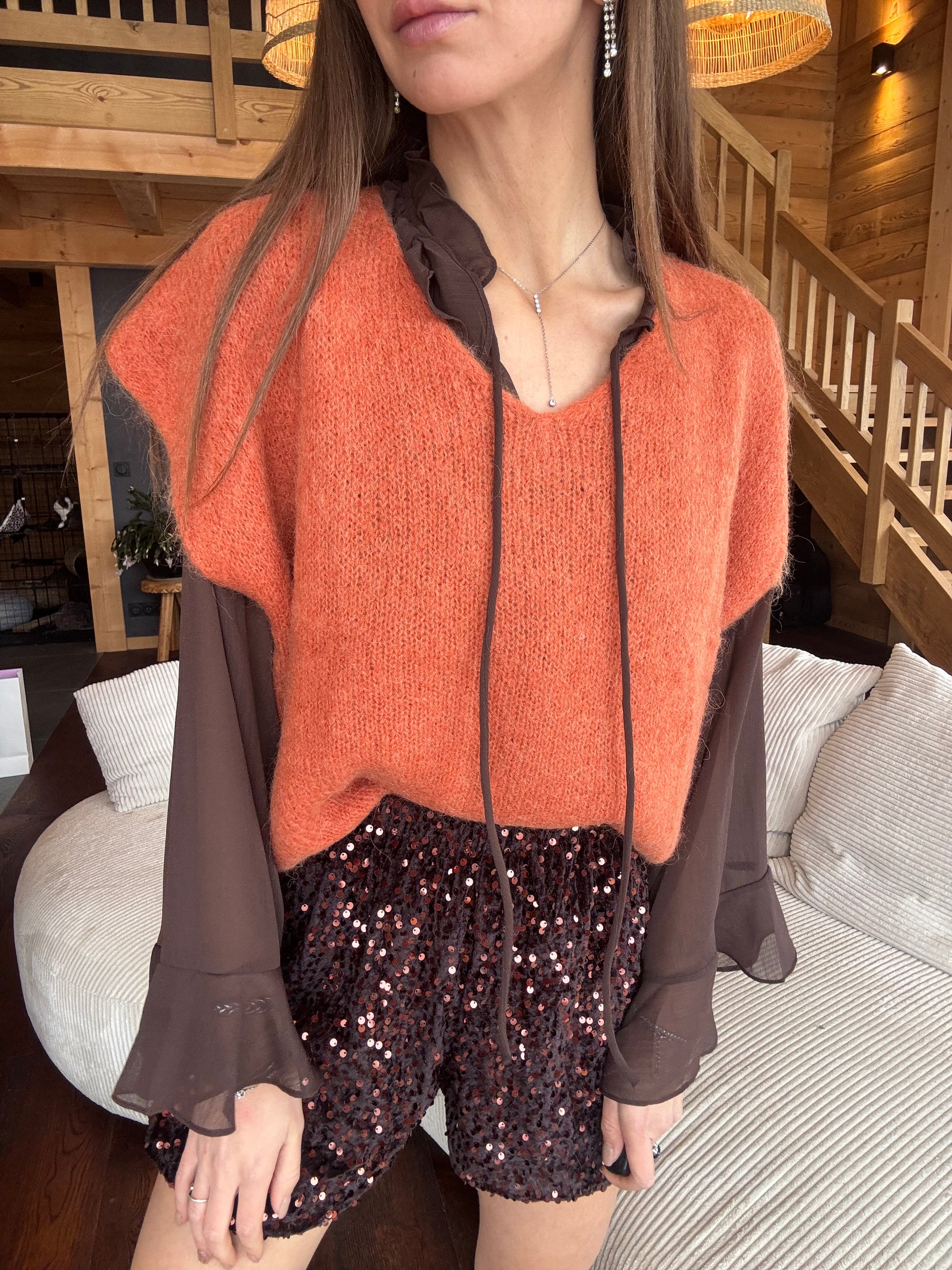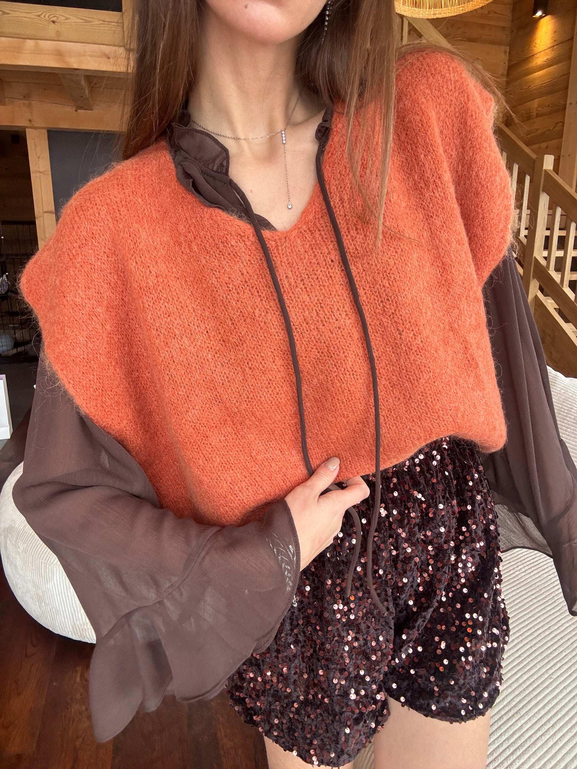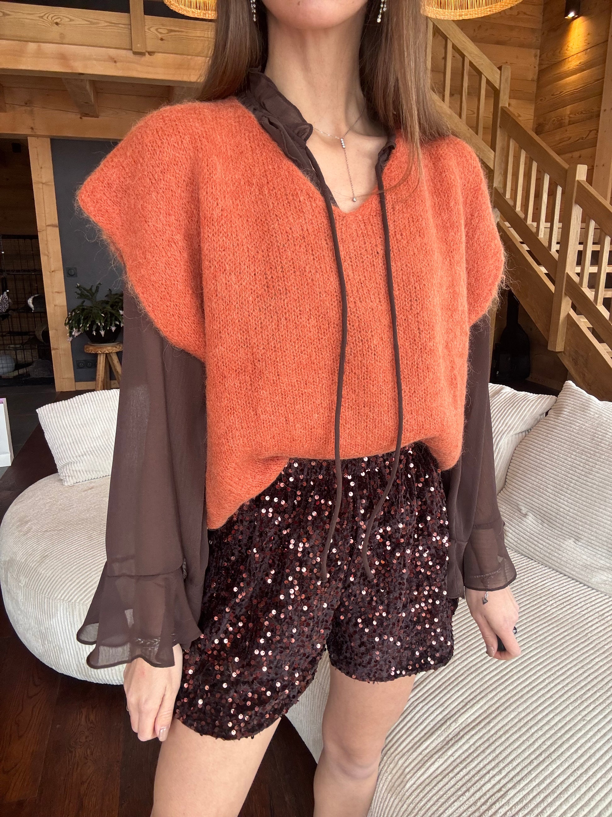 Un coup de coeur de plus aux bichettes pour ce petit pull sans manches col cheminé à sequin ! Si chic pour les fêtes de fin d’année