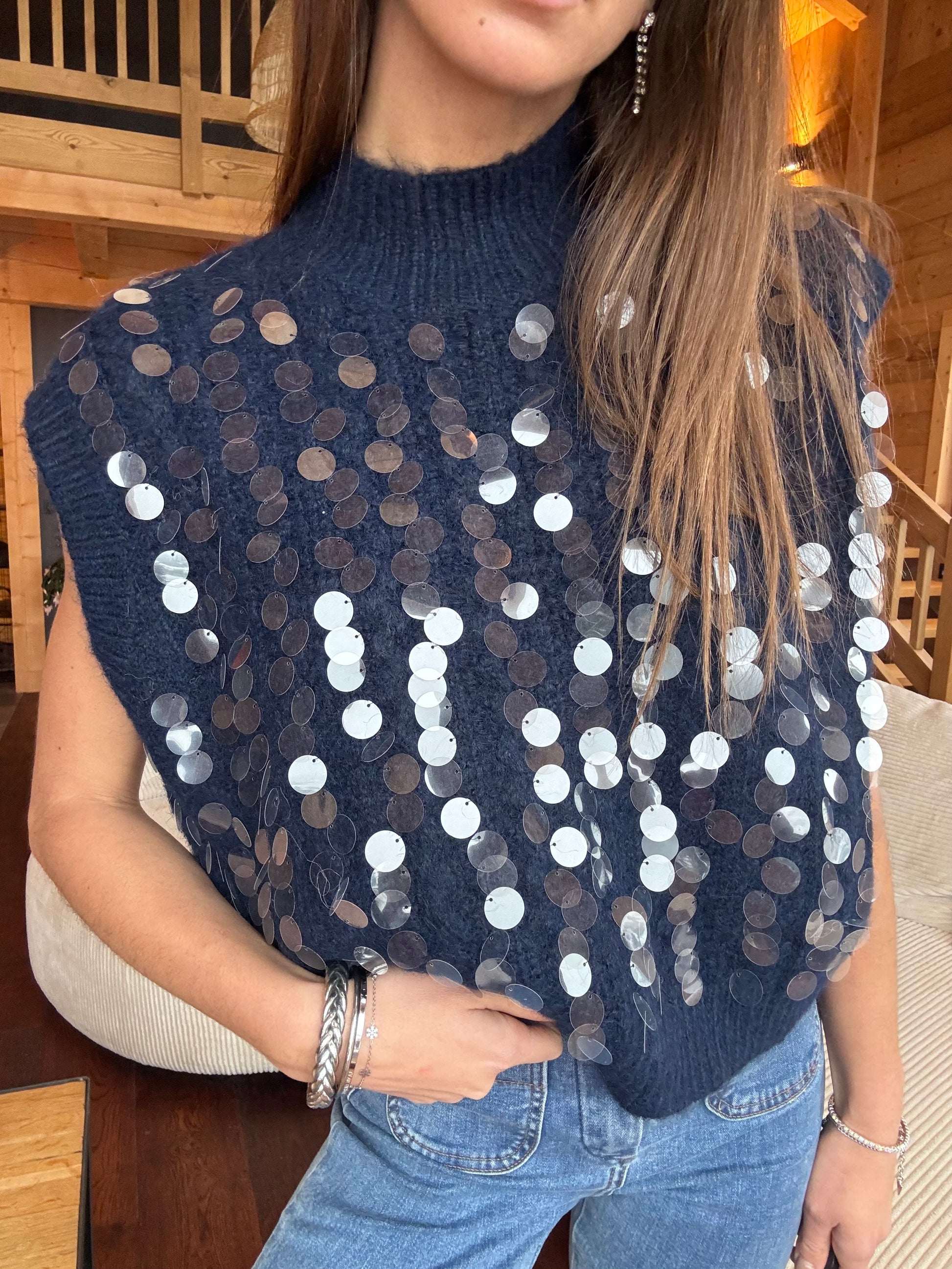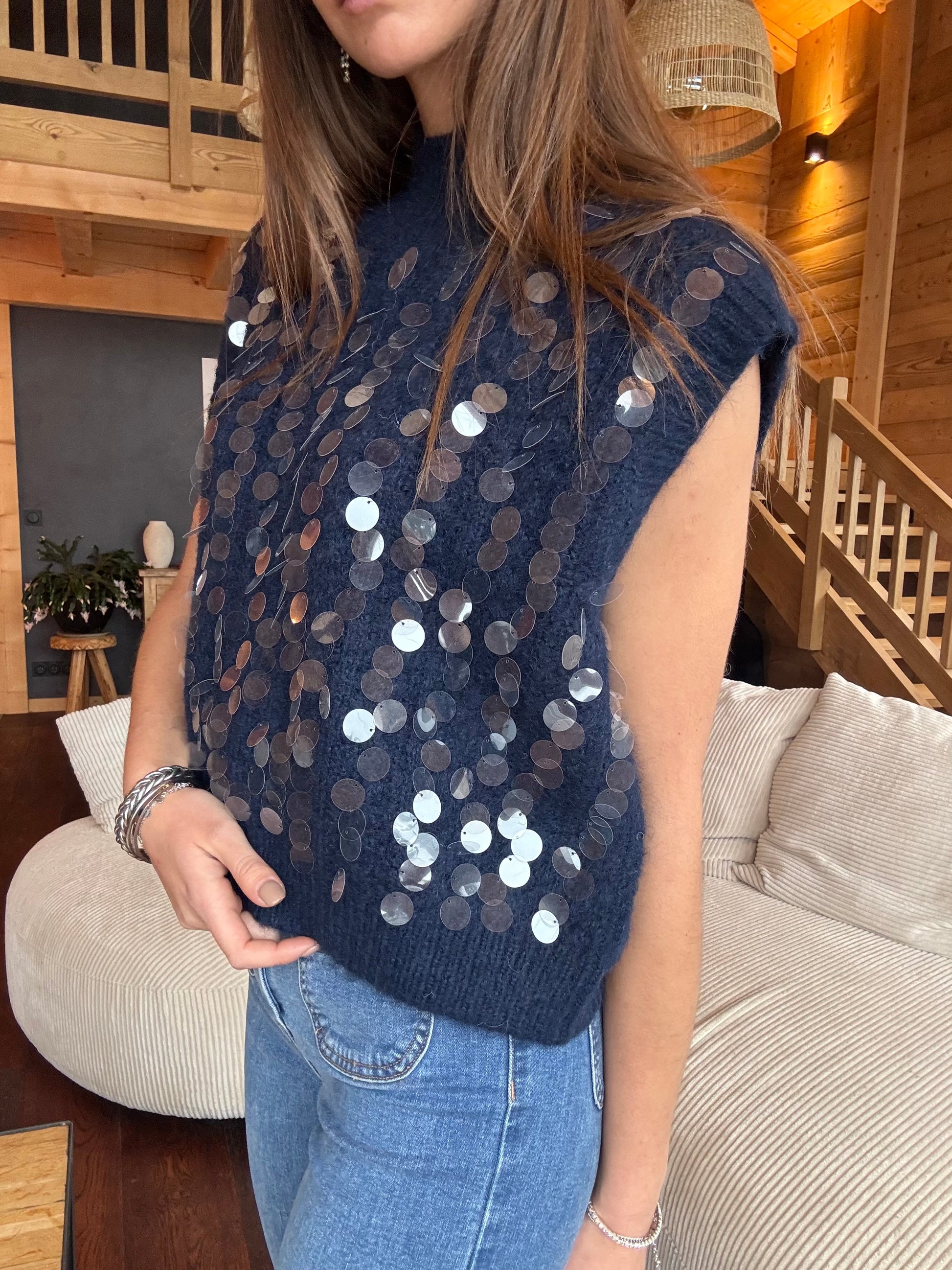 Un coup de coeur de plus aux bichettes pour ce petit pull sans manches col cheminé à sequin ! Si chic pour les fêtes de fin d’année