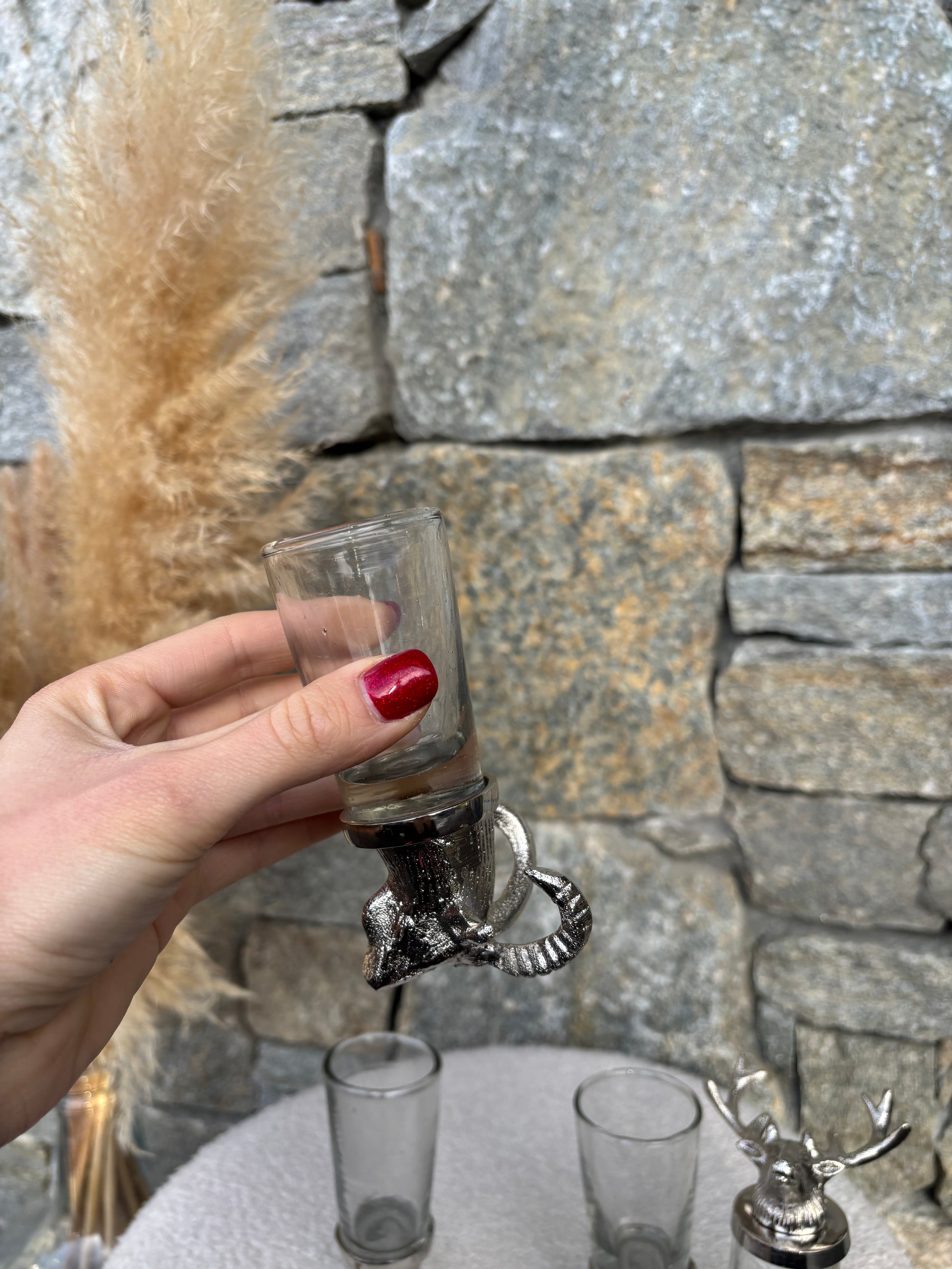 Nos petits shooters cerf et bouquetin en aluminium et verre