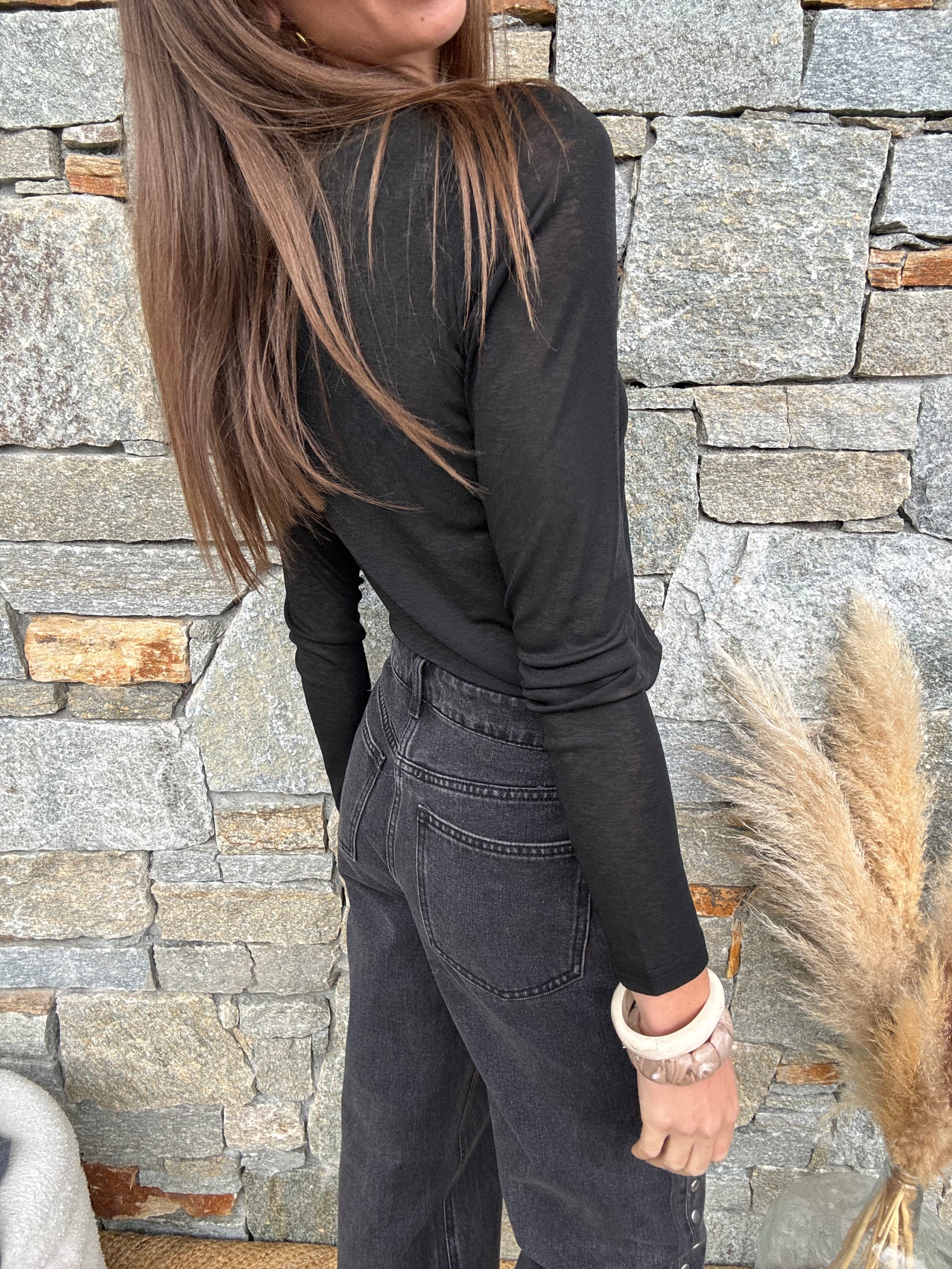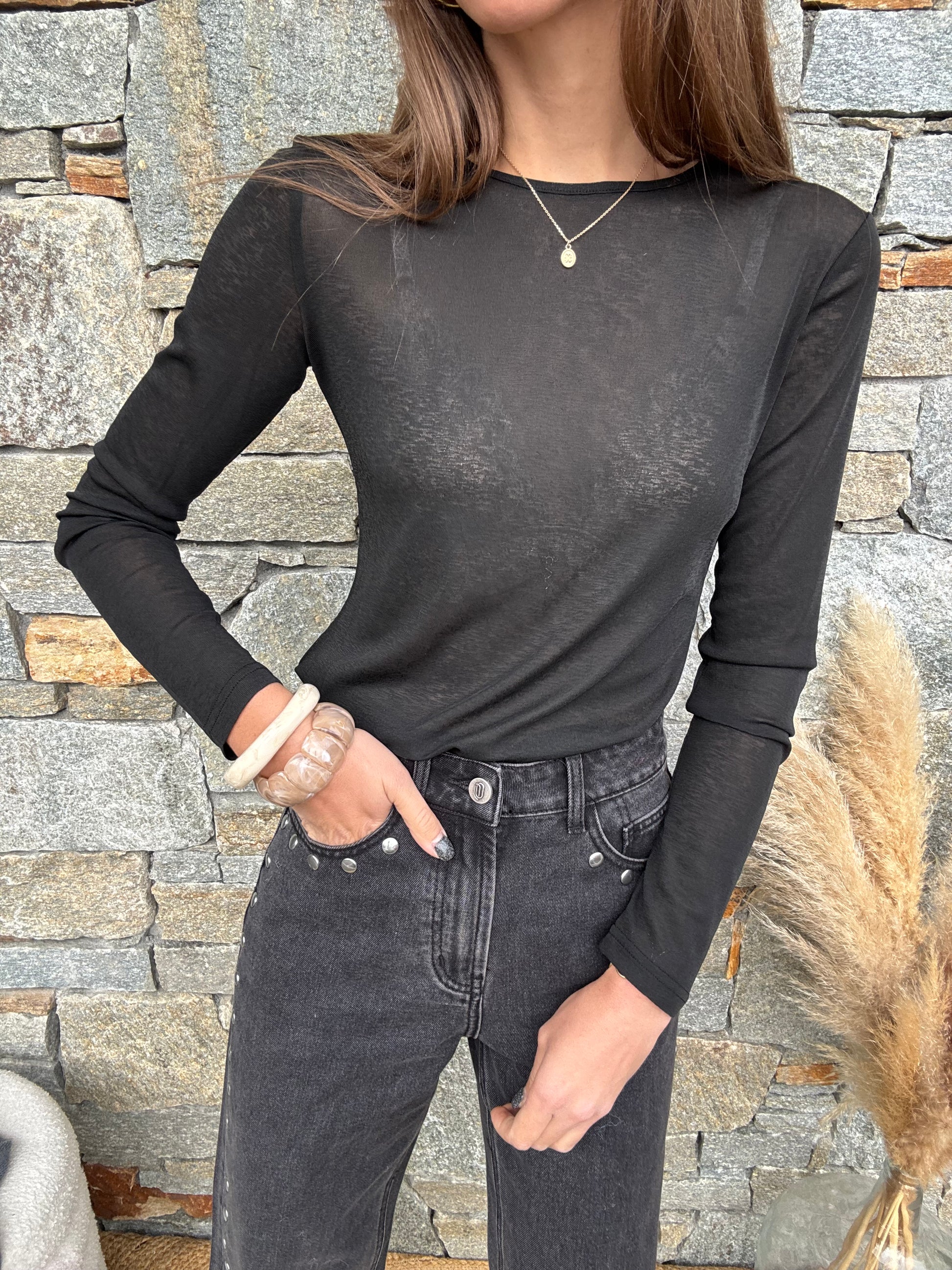 À porter sous forme de top légèrement transparent avec un pull sans manche, un blaser échancré mais en sous pull pour un apport de chaleur supplémentaire en période hivernale.